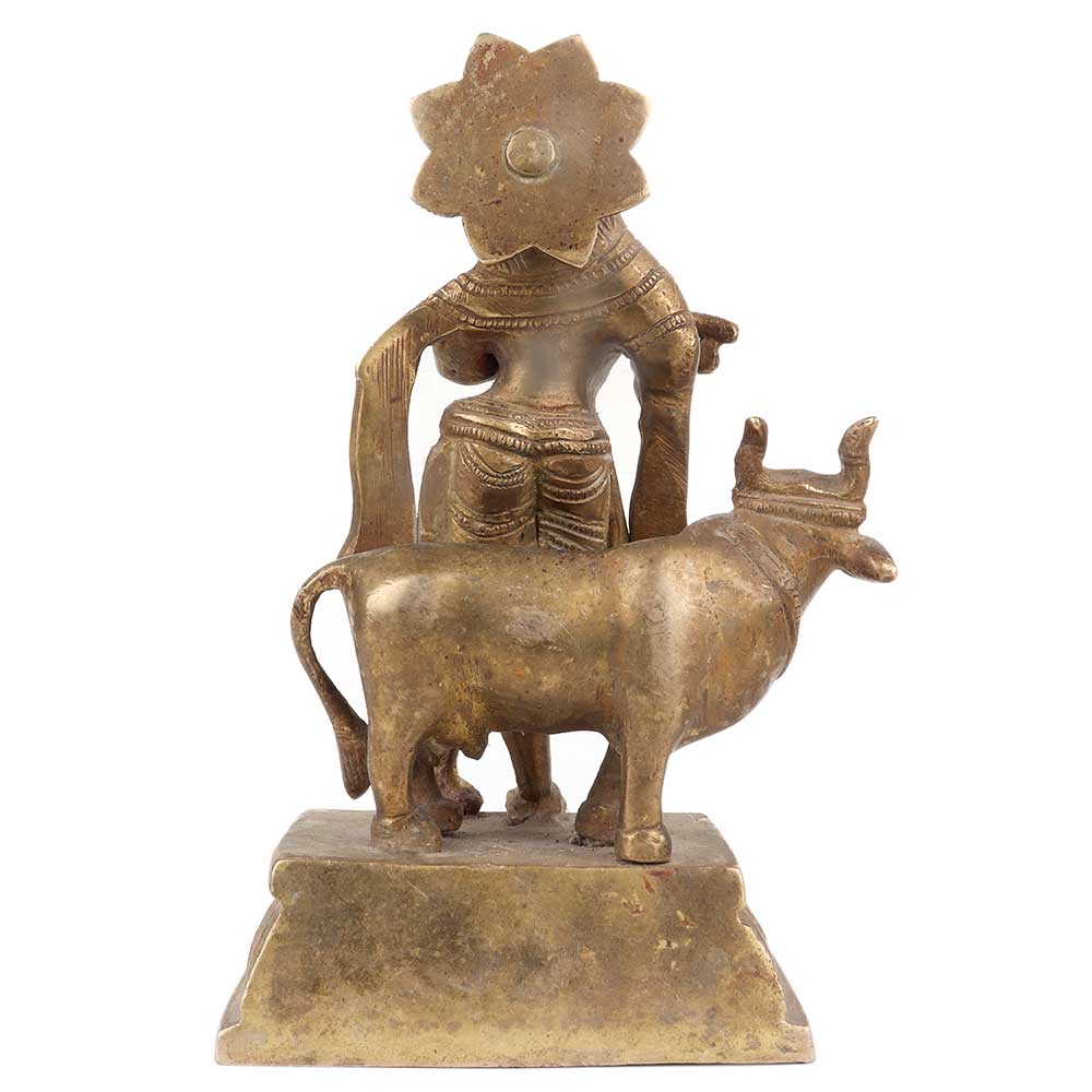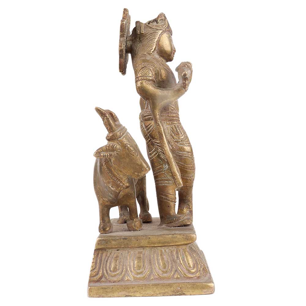 lovely and detailed brass standing Krishna statue with his cow and flute. Lord Krishna is the most admired and worshipped lord . He stands on a lotus base and is made by the expert artisans of india .Use it as a showpiece in the interiors of your house, as a diwali gift, wedding gift , birthday gift or house warming gift.