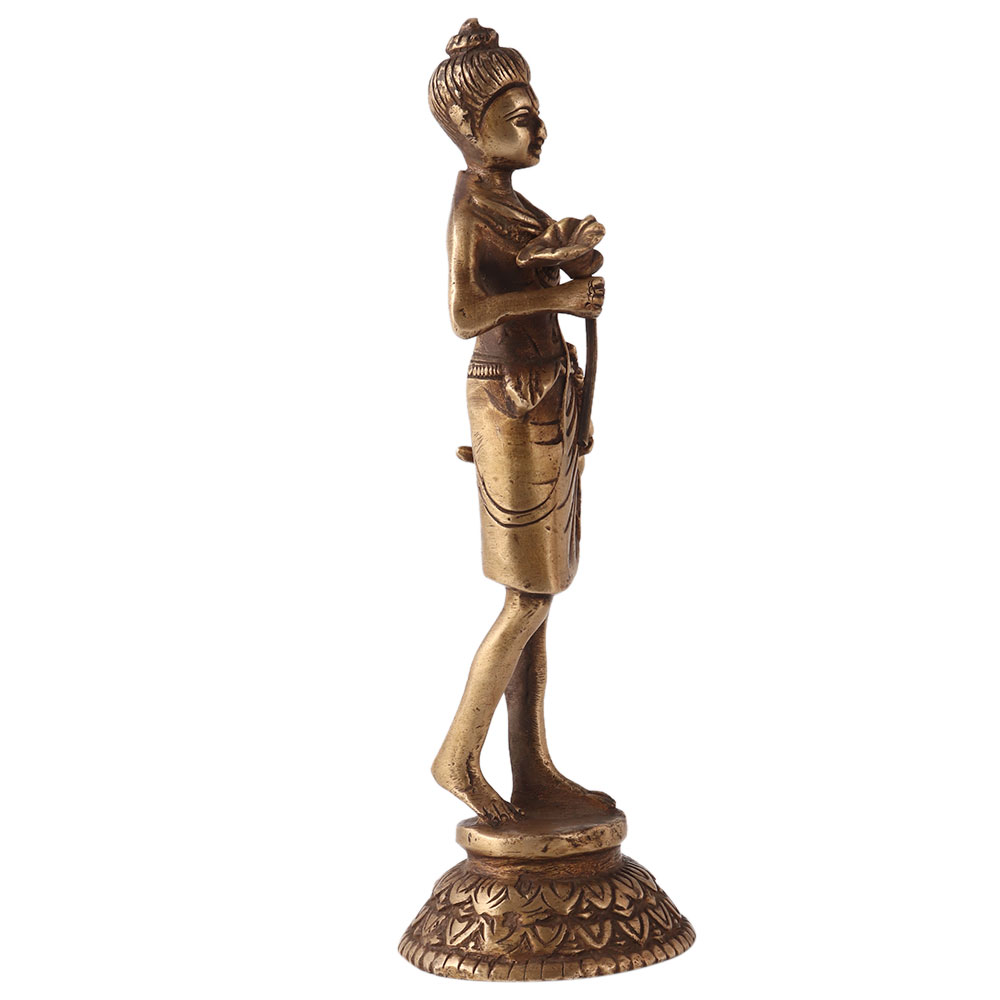 A statue of the walking Neelkanth or Nilkanth Varni holding a kamandalu in his left hand and a lotus bud in his right hand. This brass statue is an exquisite piece of decor for your desk at home or office. Ghanshyam Pande left home after the demise of his parents and named Nilkanth Varni on his journey. He was a young yogi who mastered astanga yoga in nine months under the guidance of master Gopal Yogi. On his journey he met Ramanand Swami, who gave him the name Lord Swaminarayan. A gift for all occasions for your loved ones.
