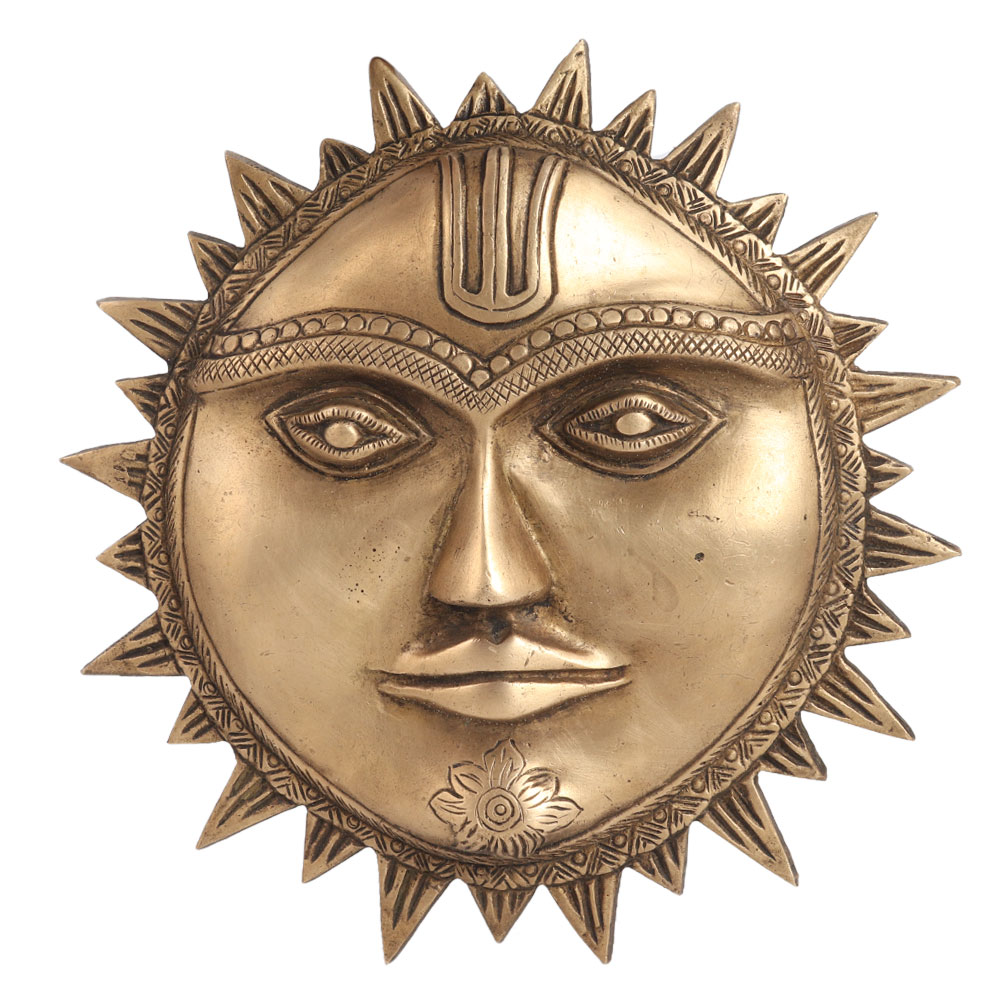 This sun face god or Surya wall hanging is carved from brass alloy. It was handmade by skilled Indian workers. It has a hook on the back to hang it on the wall. Hang it in an eastern direction in your home, office, restaurant, hotel or shop to spread positivity. If you are one of those who are not able to get sun rays directly or physically, hang it in your room. You can also hang this on main door or in your pooja room. A perfect gift wedding, birthday or spiritual occasion.