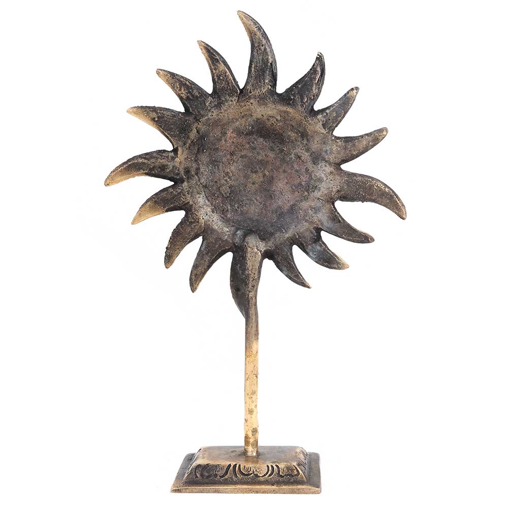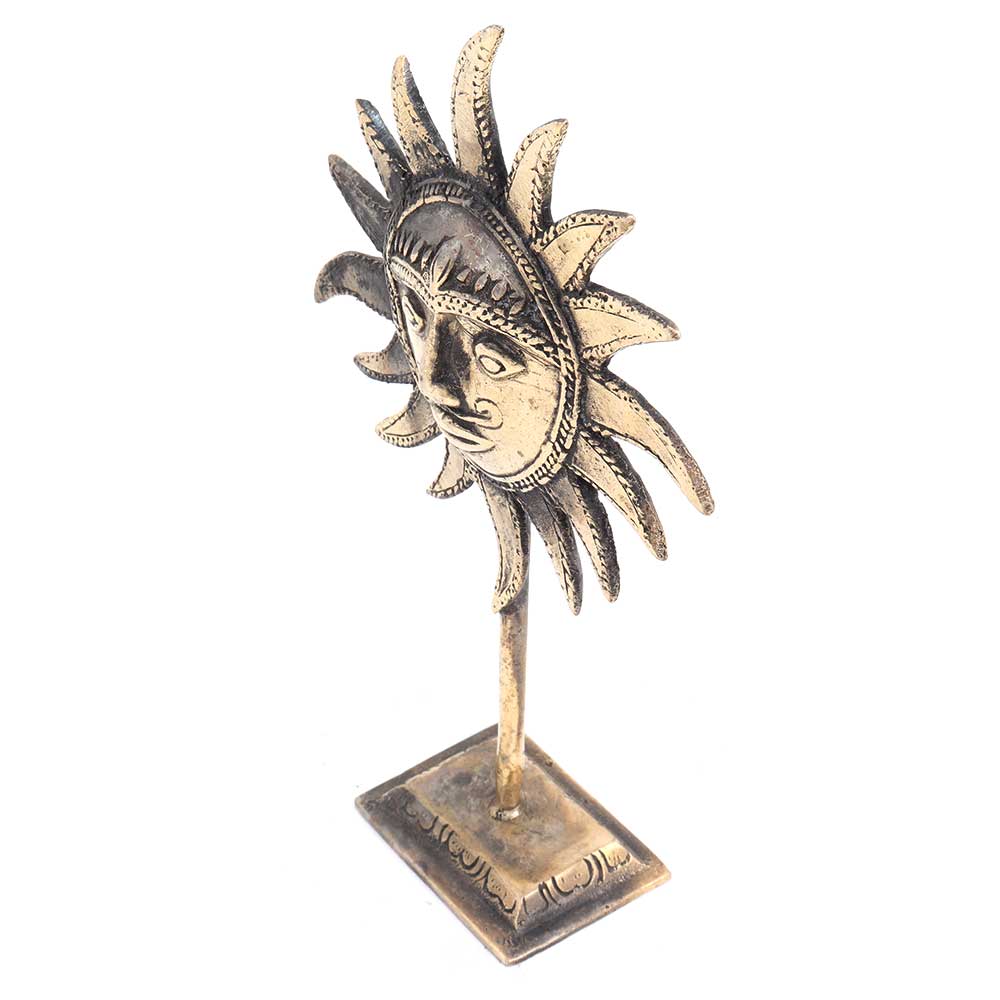 Hand Crafted Tribal Sun god Face on a stand is made using traditional methods and tools. Table decoration, display shelf decoration showpiece, hotel reception decoration statue, Paper weight . Diwali gift, Anniversary gift and wedding gift.