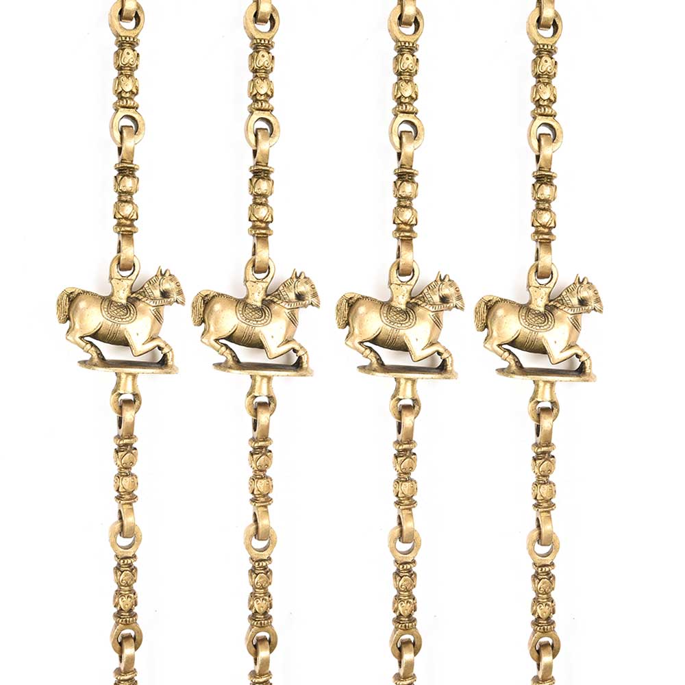 Stylish chain engaged with animal figures like Horses, peacocks and lady figurines to add more class and traditional look to the brass swing chais.