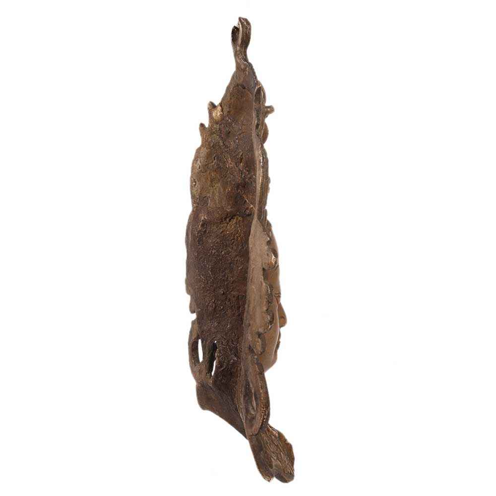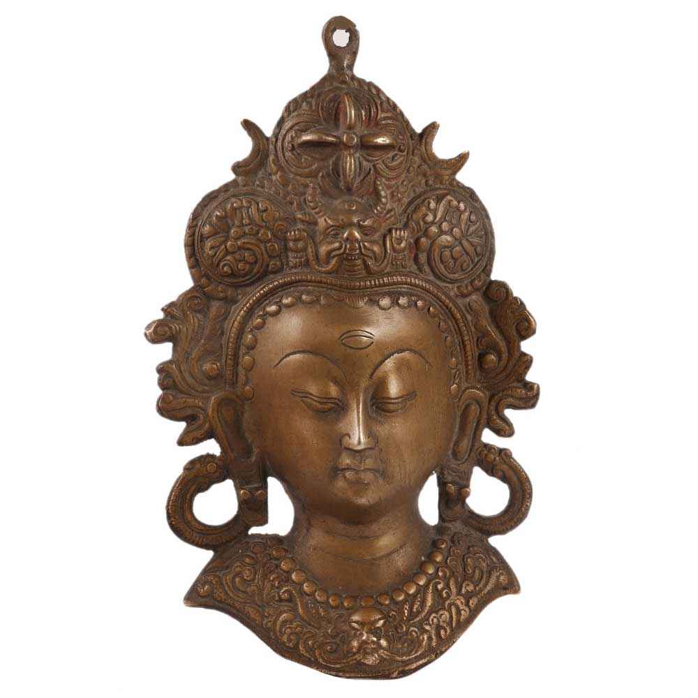 This is a lovely Tara wall hanging mask. Brass is used to make this Tara wall hanging mask. This mask was created using the lost wax method. The head of the mask is intricately detailed, and tresses extend through to the neck. Tara is also known as Dolma and Arya. Tara is a female Bodhisattva in Tibetan Buddhism. She is known as the Mother of Emancipation and symbolizes the values of hard accomplishment. Tara exists in 21 different forms.