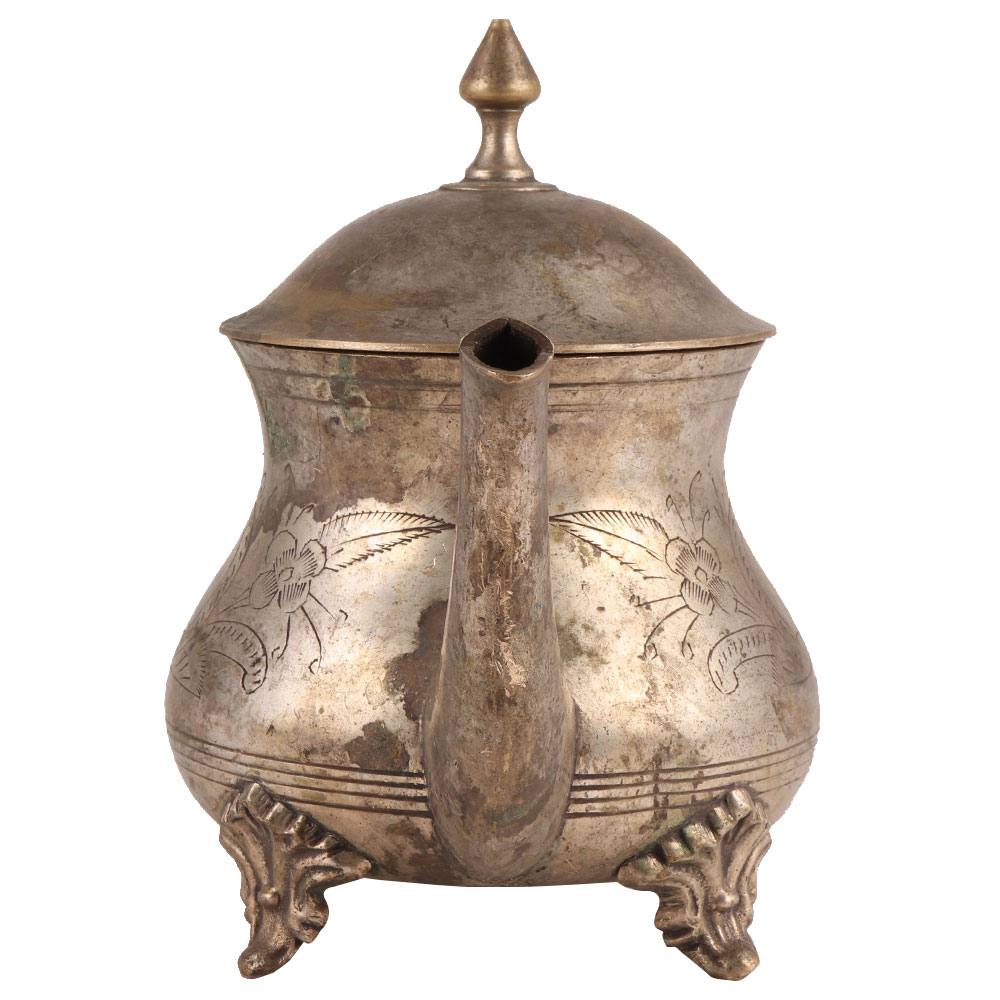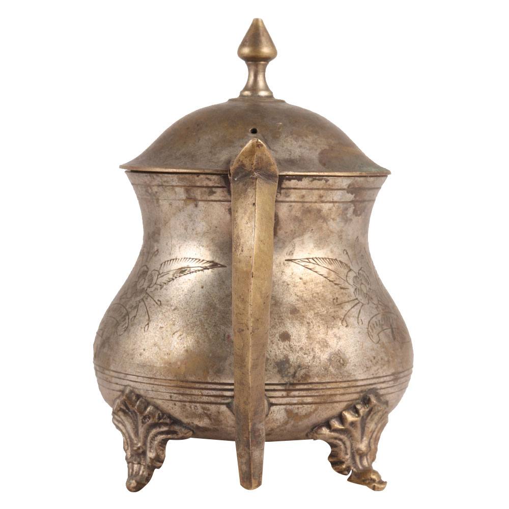 Handmade solid brass kettle with fine details comes with a cover and a handle. A classic style spout with a beautiful patina would make an excellent addition to your decorative collection.