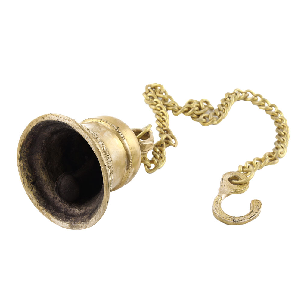 This bell will add a touch of elegance to your temple. A lovely brass metal hanging that is ideal for religious and ornamental purposes. It is also suitable for usage at home and at temples.
