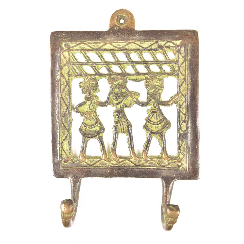 Dhokra Art Metal Wall Hook Hanger is A Beautiful Piece of Art Made From Brass Metal. It has 2 Sturdy Hooks Intact. the Hook Hanger is Made Using Dhokra Art. You can Use This Gorgeous Hook Hanger on the Walls of Your Living Room and Bed Room to Give It A Stylish Look. Hang Your Bags, Garments, Accessories or Keys It Will Stay Right on Its Place and Also This Dhokra Wall Hook Hanger Gives A Look of Designer Wall Art. It has Designs Inspired By the Tribal People. It can be use At Homes and Offices Too.