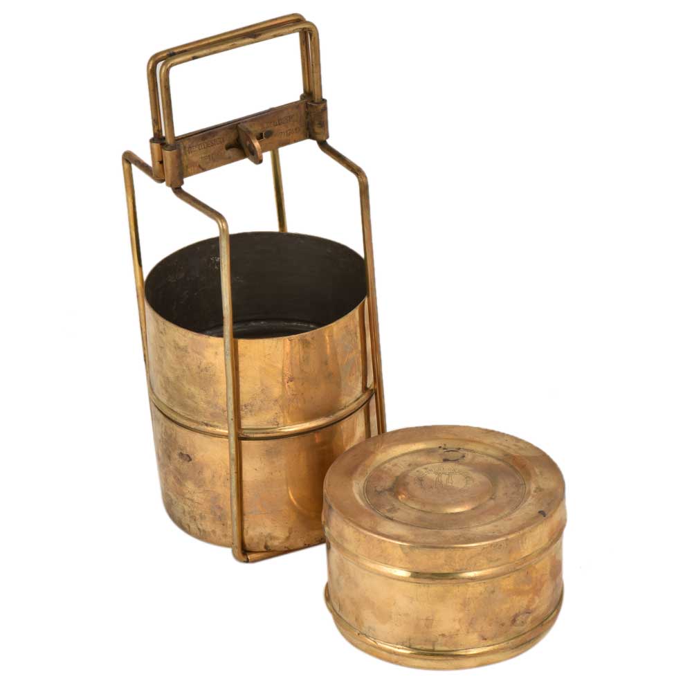 Brass Tiffin Box with three containers and a thin brass strap frame with a locking system on the top of the frame . The Box has spacious container that can be used for storing your valuables, use it as a showpiece, decoration for your display shelf, use it for decoration of flowers, as a planter. Serves as a great corporate gift.