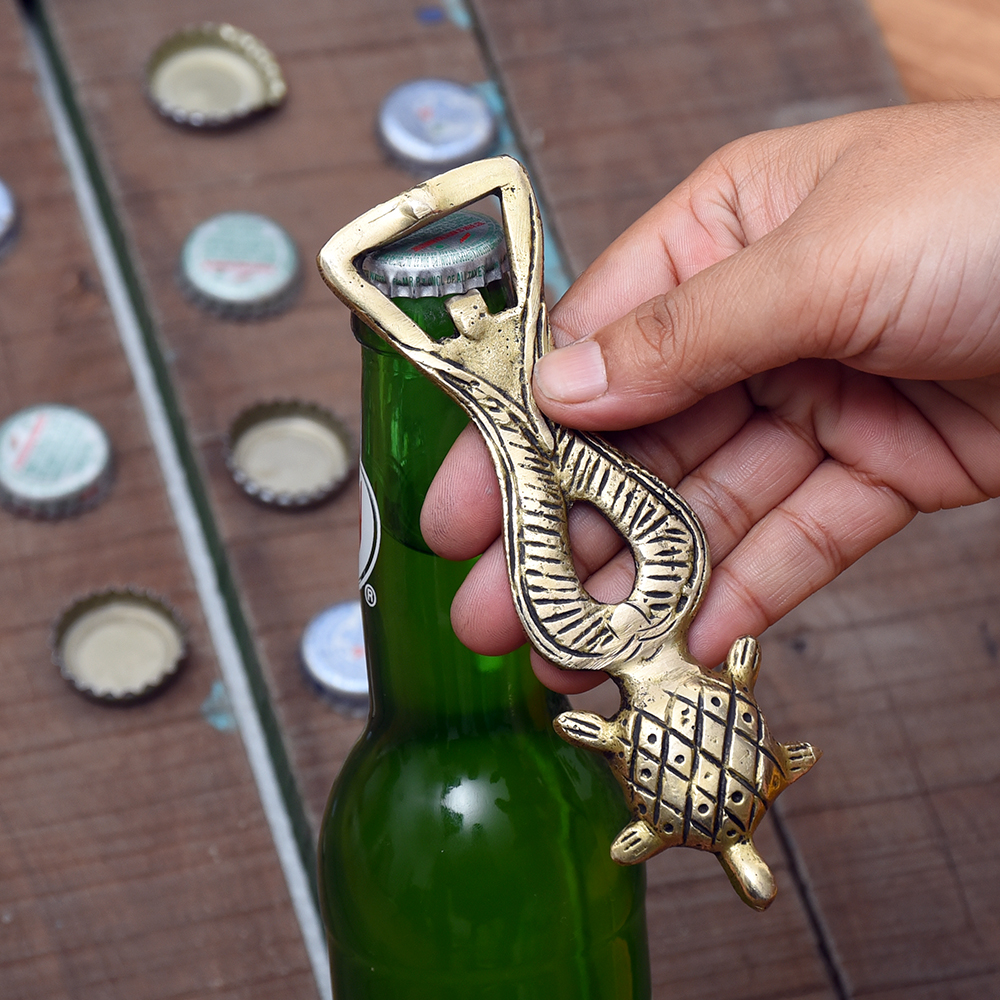 Made of solid brass functional this cute Tortoise bottle opener with a golden brass finish is perfect for the kitchen or any bar area. Locate one in your home or outside for parties.