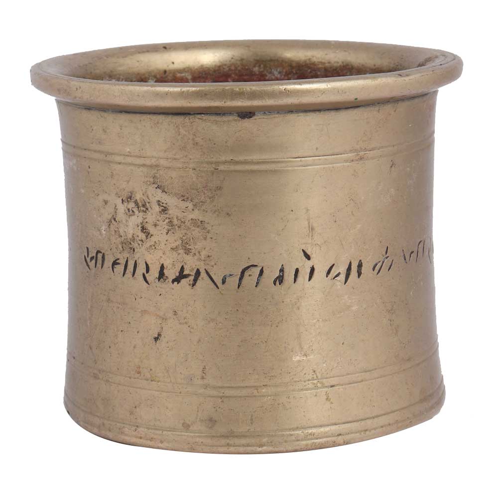Brass handmade traditional Puja Panchapathiram cup with the name of owner engaved on it. It is used for charnamrita distribution and gifting. Ideal for Puja, Prayer, Auspicious Occasions & Festivals.