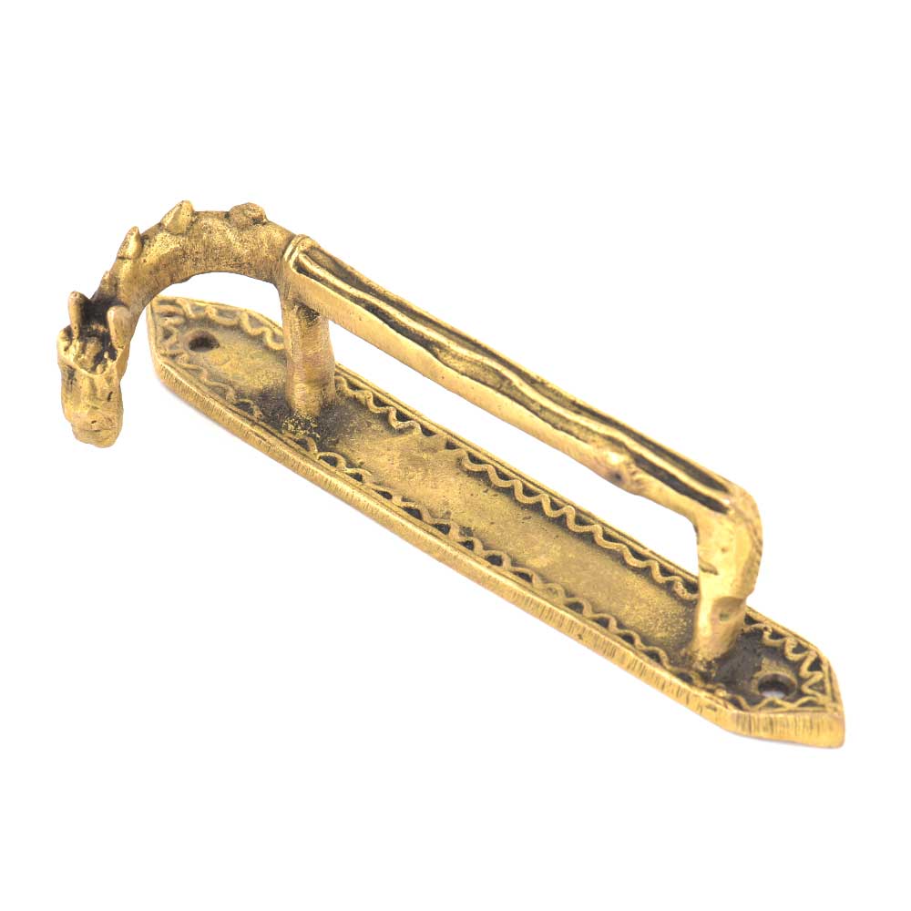Handmade tribal art horse handle is made of brass by the skilled craftsmen of India. This handle has has long back of the horse and has hairs on it. This horse handle can be used for almirah, doors, wardrobe, dresser, cabintes, drawers, etc.