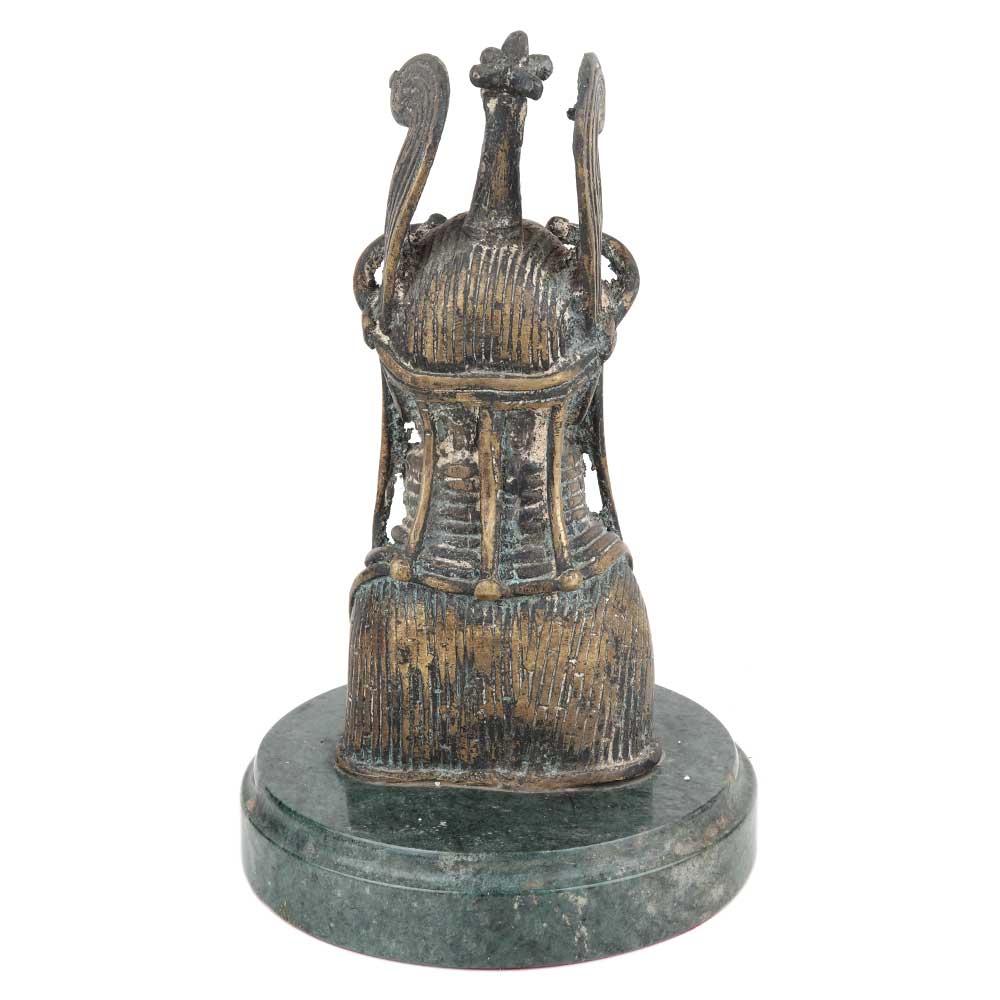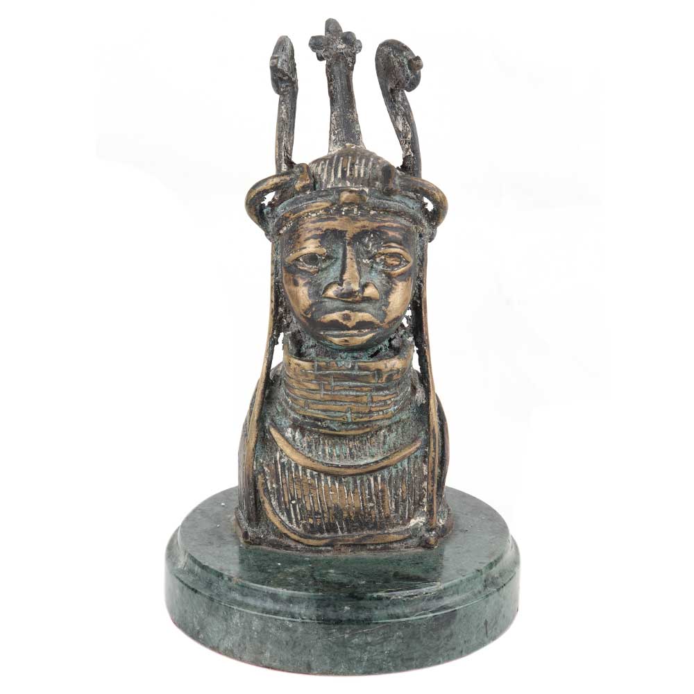 Brass Tribal style women face bust with unusual looking crown wired design on a green round base can be used as showpiece in home as well as in office. Gift it to your near and dear ones on special occasions and functions.