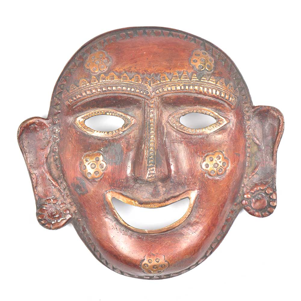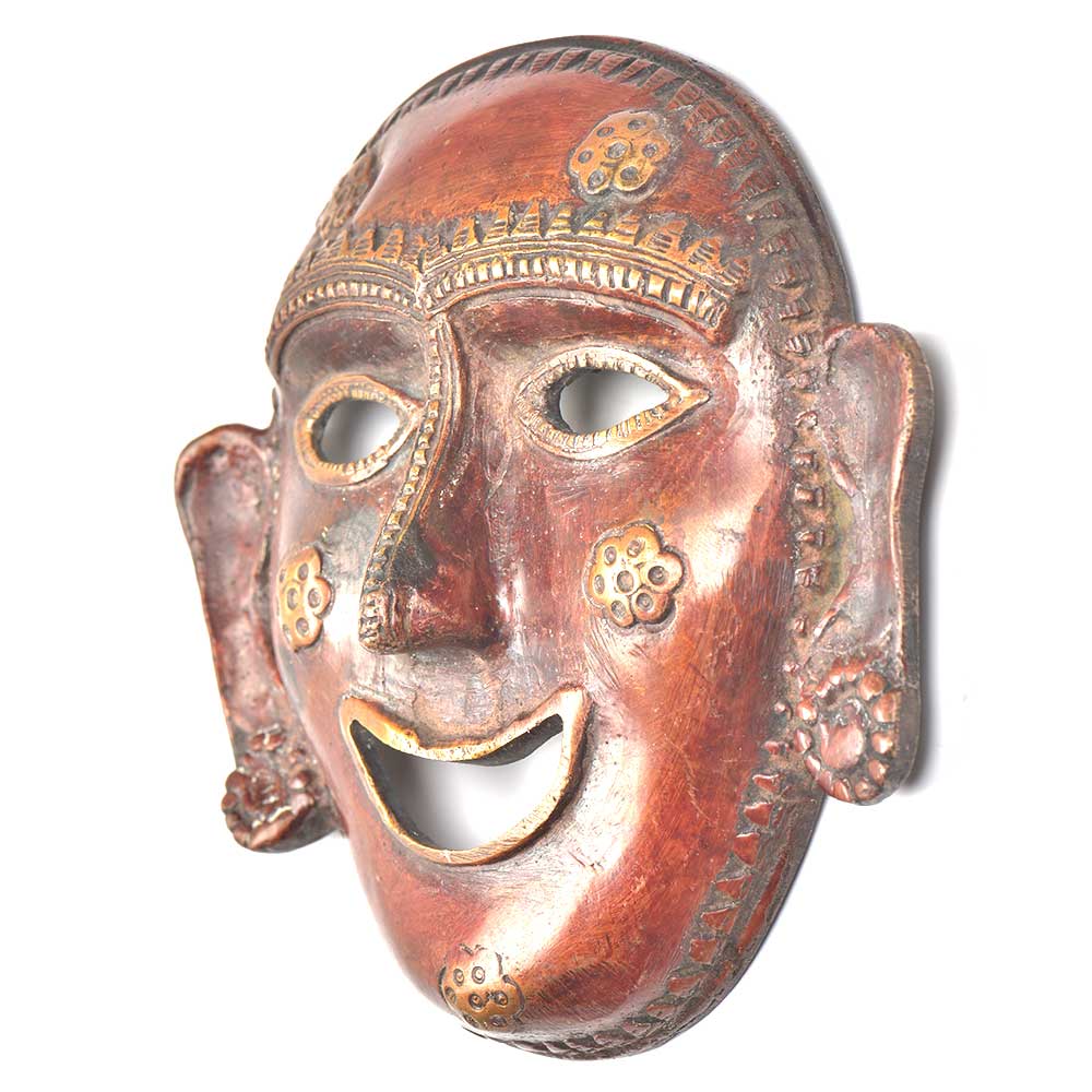 Add a unique style statement to your home and spice up your interiors with Hand Carved Tribal Mask . The mask is of a tribal face of a man and is made of brass is painted in red to give it a colorfu look . Suitable for Indoor and outdoor use and also ideal for gifting purposes.