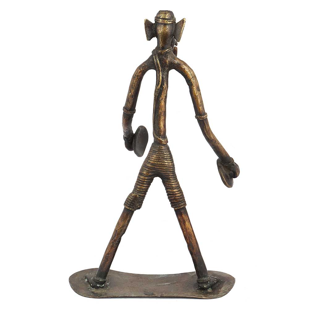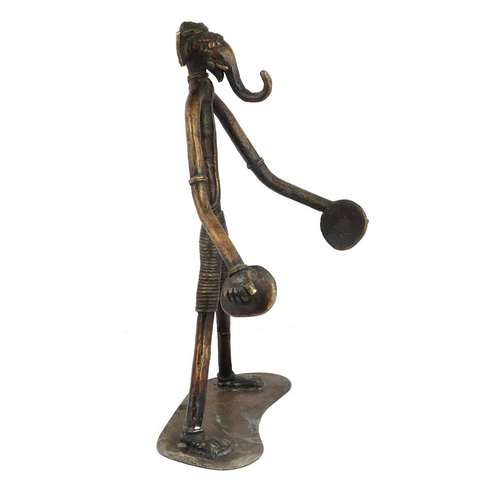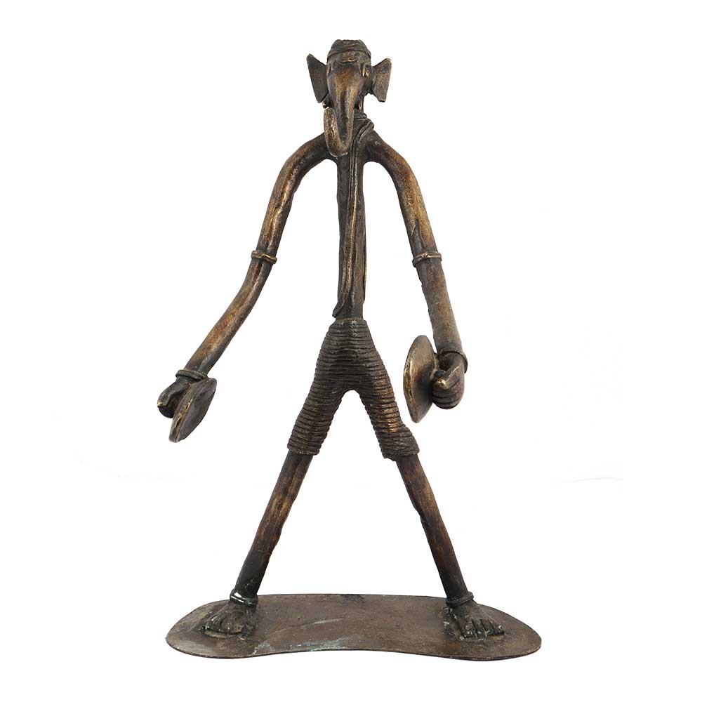 Handmade brass tribal Musical Ganesha sitting made using lost wax process. It is made by a thin brass wire and twisted so as to give it the shape of lord ganesha with long hands and legs. This elongated ganesha beautiful figurine can be used for gifting as a blessing, worshipping or for decoration.