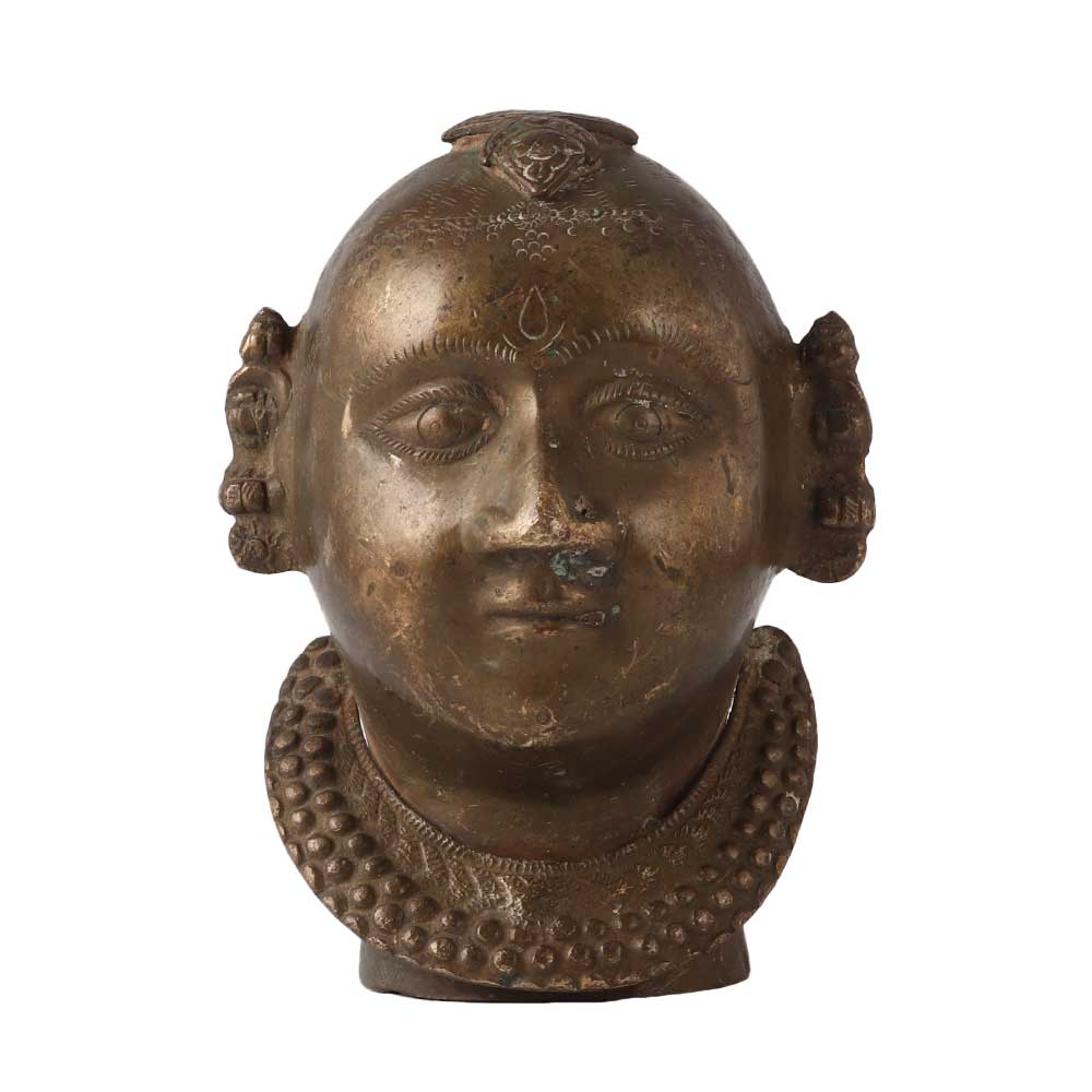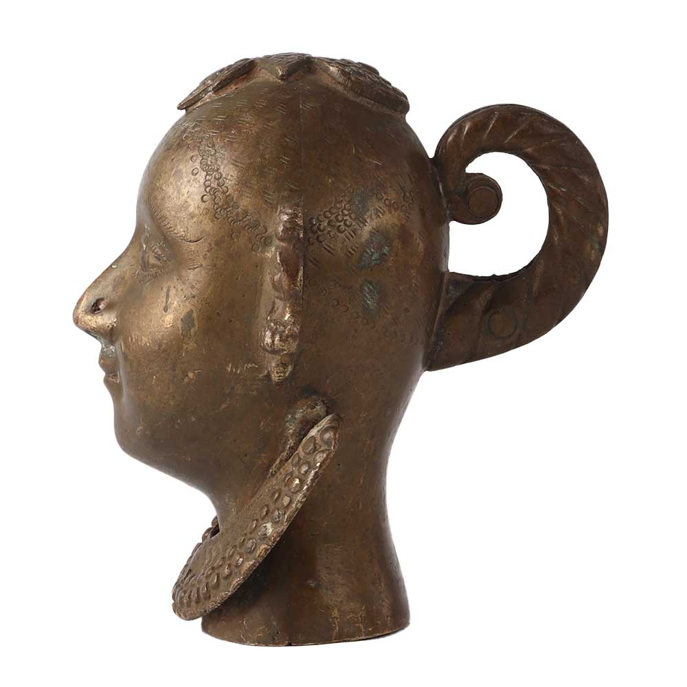 India's skilled artisans created this gorgeous antique, a complex, large brass Gauri head. The Gauri's hair and jewellery both have lovely touches. The item is in excellent condition and would add a great traditional charm to your decor. Gauri is viewed as the consort of Lord Shiva, Goddess Parvati. She stands for fertility, love, and sacrifice. Despite the fact that Gauri usually wears jewellery, her face conveys incredible grace and charm. Gauri is a popular deity in the Indian states of Maharashtra and Karnataka.