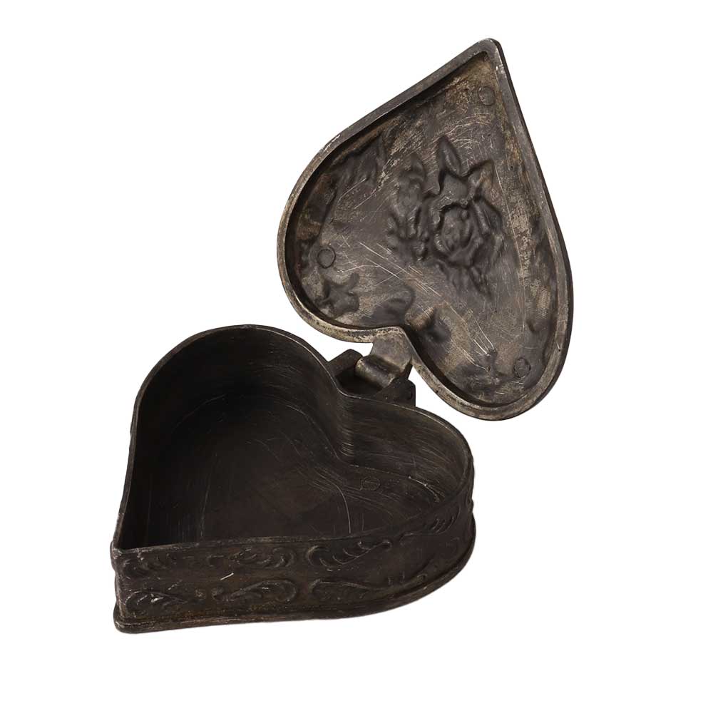 A brass heart shaped trinket box with an embossed design is a decorative and functional item that is used to store small personal items such as jewelry, trinkets, and keepsakes. The box is made of brass, a material that is known for its durability and resistance to corrosion. The heart shape of the box is a unique and distinctive design element that sets it apart from other trinket boxes. The embossed design on the box is typically done by skilled artisans and can depict a variety of patterns and motifs. These designs are made by pressing an image or pattern into the surface of the metal. The brass heart shaped trinket box is a perfect item for someone who is looking for an item that is both functional and decorative. They can be a perfect gift for someone special or a great addition to any room decor. These boxes are also considered as a collectible item and the value of them increases over time.