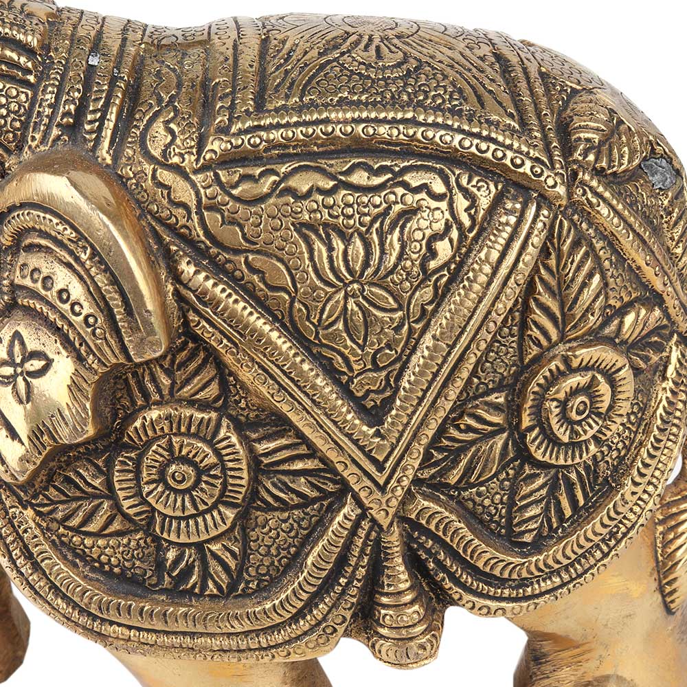 This lovely brass elephant figurine with detailed engravings all over the statue is perfect for your home decor, as a bedroom accent, or adorning your bookshelf. What a perfectly large decor piece perfect for a kids room or nursery too. Keeping Brass elephant with a raised trunk brings good luck and prosperity.