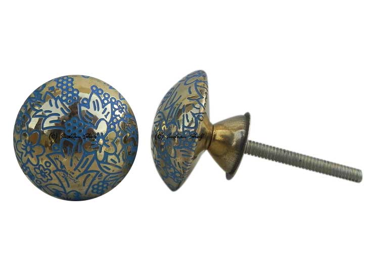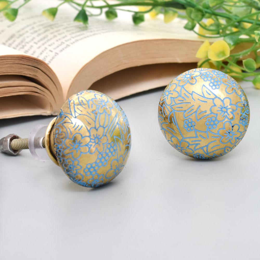 Brass Turquoise Floral Knobs. Ideal for Drawer, Dresser, Cabinet, Wardrobe, Cupboard and Almirah.