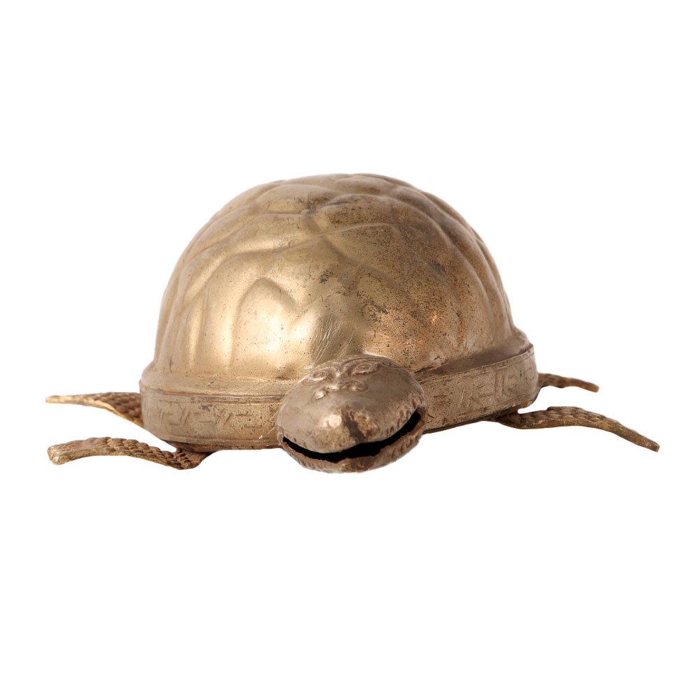 A brass statue or idol of a turtle is a common symbol in Hinduism, Buddhism, and Feng Shui. The turtle is a revered animal in many cultures and is believed to symbolize longevity, stability, and good fortune. In Feng Shui, a brass turtle statue or Yantra is often used to enhance the energy in a home or office, especially in the north or northwest direction. The brass turtle statue is typically crafted with intricate detailing, depicting the turtle with its shell, head, and limbs. Some may also have engraved mantras or symbols on the surface. The brass material is valued for its durability and aesthetic appeal, making it a popular choice for home décor and religious items. Overall, a brass turtle statue is believed to bring positive energy and good luck to the space it is placed in.