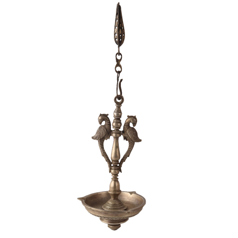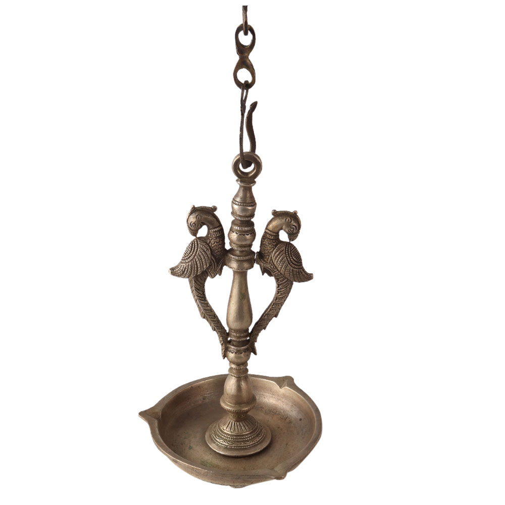 This brass oil lamp has an extremely lovely appearance and can be hung anywhere between walls. It can be hung anywhere because of the bells that are suspended from the chain. This chain is long enough to hang anywhere in the room, which is very helpful. Because this chain is made of brass, you can rest easy about its quality. This lovely item has a royal feel thanks to its solid brass construction. It makes a great heirloom for your house. This Deepak or Diya is more than just a simple decorative accent for any modern home.