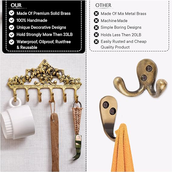 Crafted from high-quality brass, this wall hook is not only aesthetically pleasing but also sturdy enough to handle everyday use. The robust material guarantees it can support the weight of coats, towels, or accessories, making it a practical and enduring addition to your home.