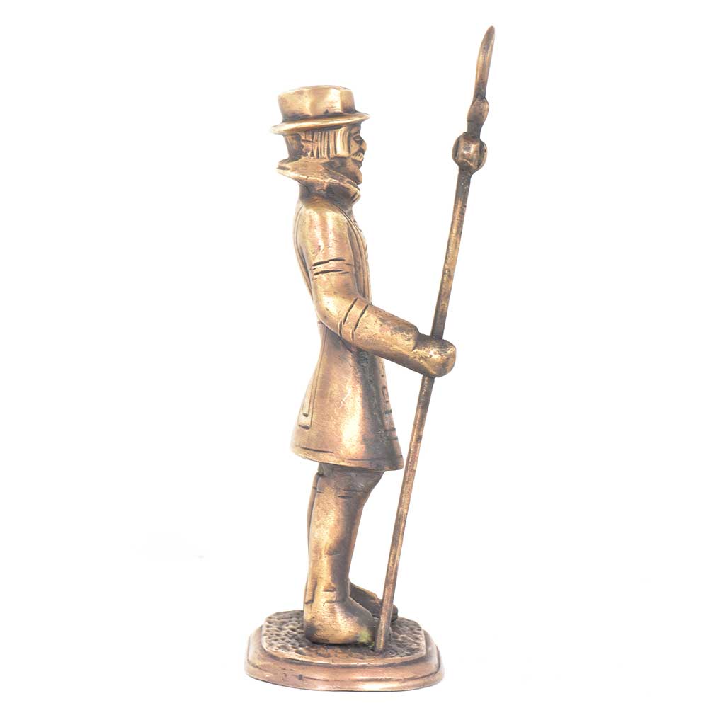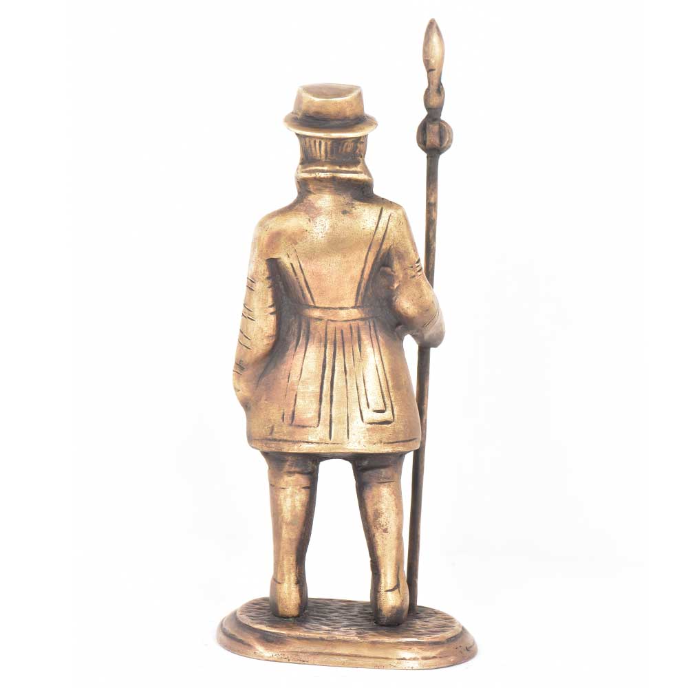 A brass english soilder standing with his weapon standing he has worn his uniform and seems to be matured. The soldier is made of beast quality brass. Place it on the display unit or use it s a gifting option.