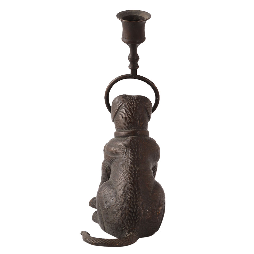 An elegant black dog candle holder for your home, restaurant, hotel or business to add a touch of glamour to your interior design. This dog candle holder is carved from high quality brass to make it reliable. In this English art statue, a dog holds a candle holder in its mouth. Place this exquisite piece on your table or shelf to beautify your home decor. Add this glamorous collectible to your vintage collection. Gift this vintage dog candle holder to your friend, family or relatives to make their day.
