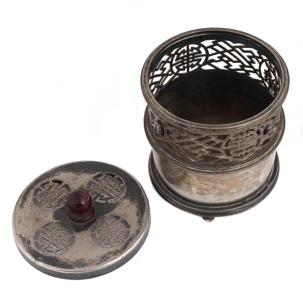 Brass Vintage incense holder from shanghai which has a jali cut design in cylindrical shape . It comes with a lid with a round knob finial. Wedding decoration, Candle Decoration, Diwali Decoration, souvenir, gift for your near and dear ones.