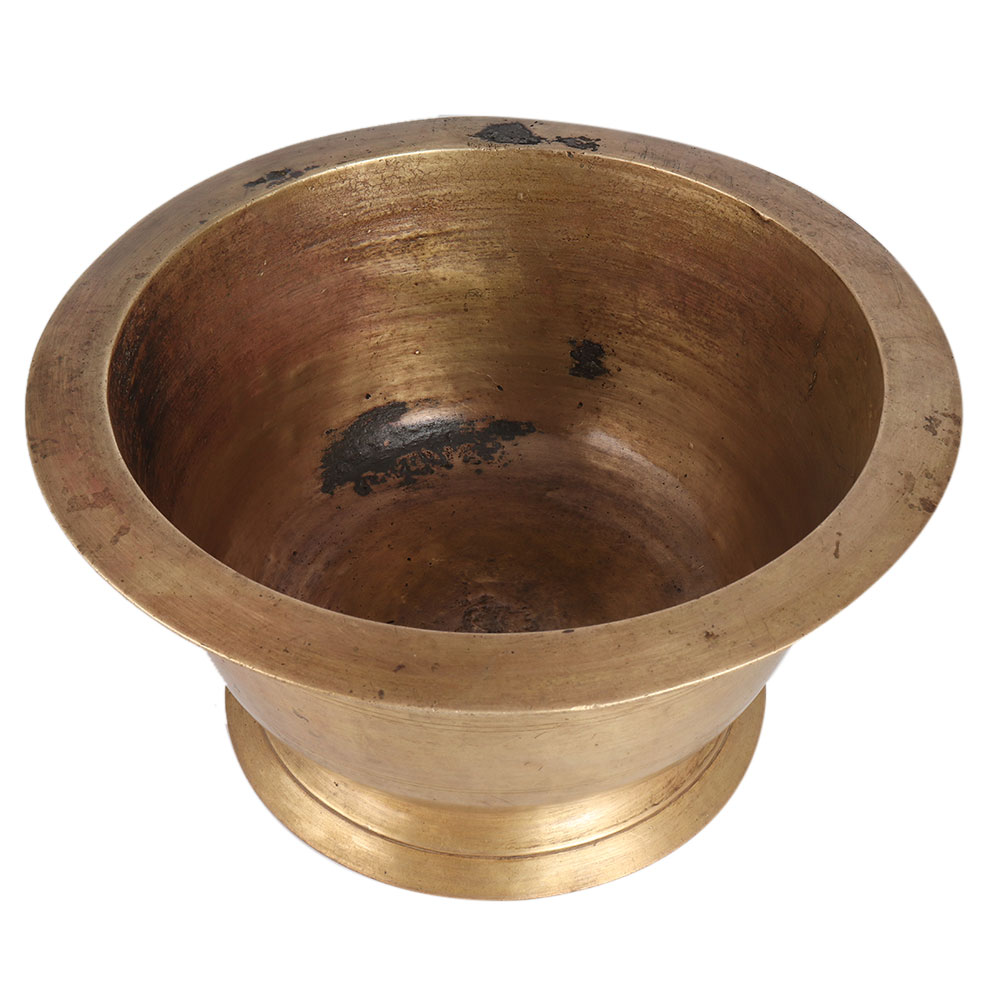 A large vintage style brass pot with a stand for planting. It was hand carved by skilled Indian artisans in Himalayan art. It has a matte golden finish. Use it as an indoor flower pot and beautify your home, office or store. You can also use it to store holy water to spread positive energy in the room. A treat for vintage collectors looking to expand their collection with this attractive, sturdy pot. A gift for special occasions for your loved ones.