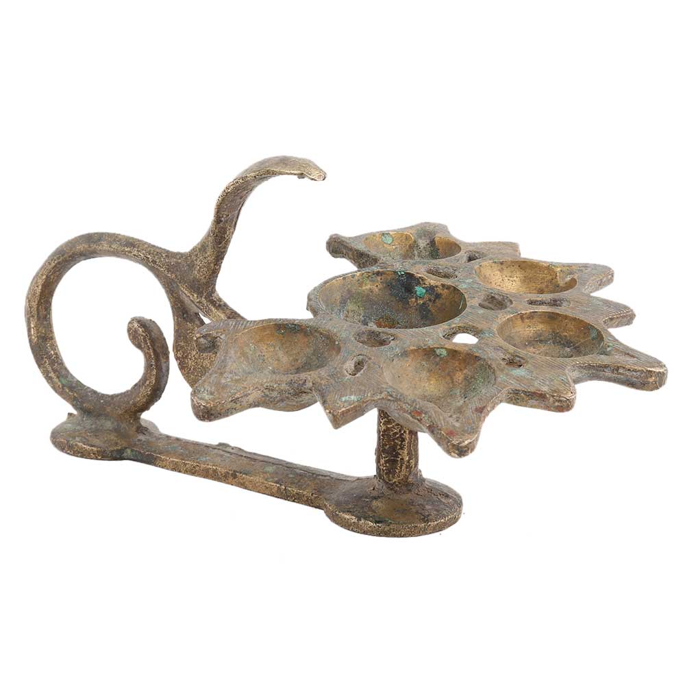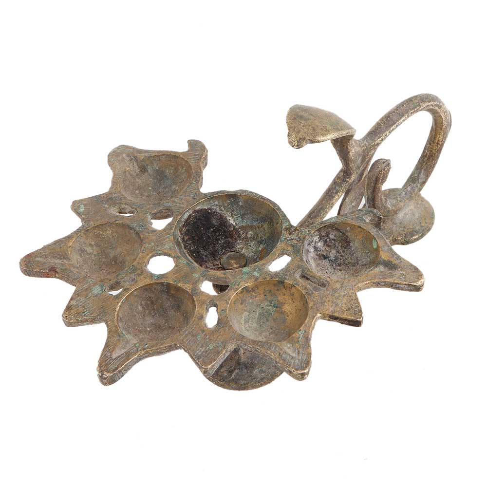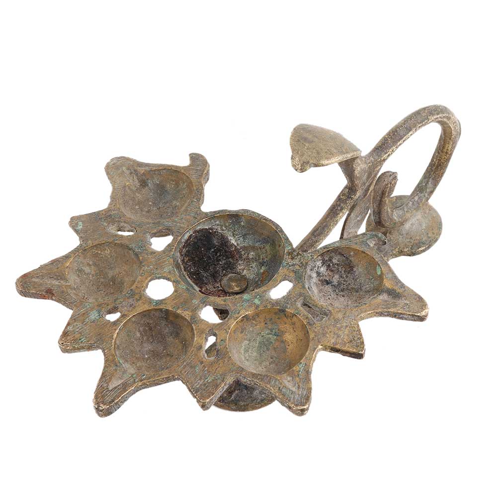 The vintage used big arti lamp with handle carries a deep significance in Hindu religion. The same is made from brass, and a cotton wick dipped in ghee or sesame oil can be used to light up your limited spaces. By lighting the vintage used big arti lamp with handle and chanting aarti, you can free your mind against greed, hatred, and jealousy. It can be an excellent gift for temples and religious events.