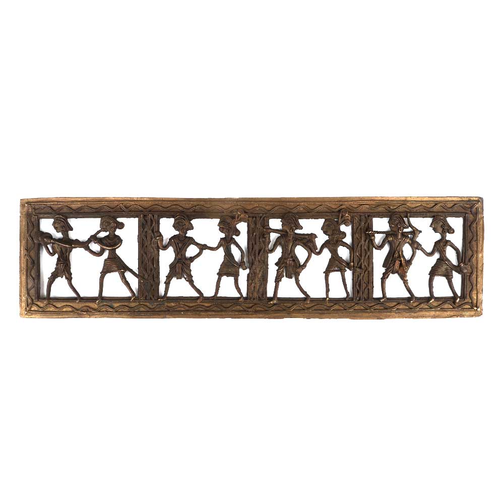 A very interesting Brass dhokra wall art hanging shows the daily life of tribal couples of the dhokra tribe, the daily activities like farming, dancing etc are depicted in this miniature art form. Suitable for your home Interiors, corporate places, hotels , spas and restaurants. Gift it to your near and dear ones.