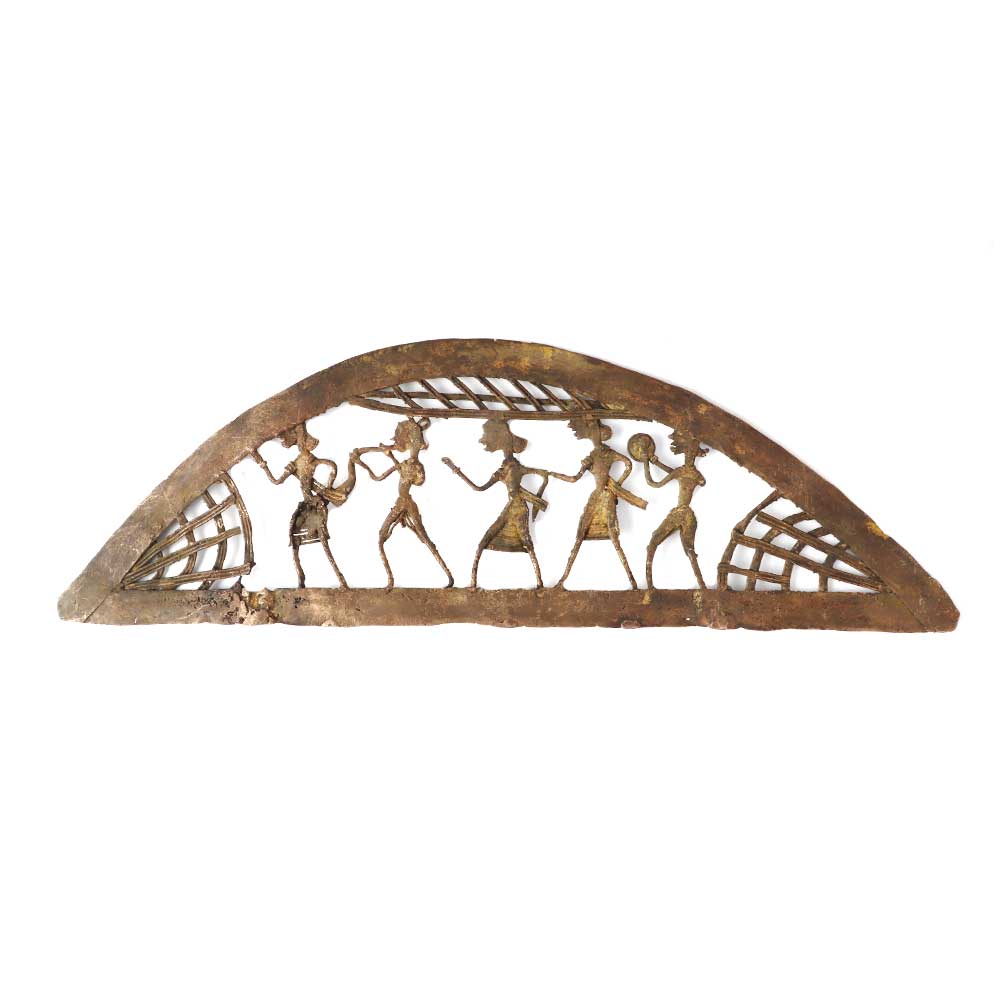 This dokra wall hanging from a brass jatra party features an inverted boat frame and adds color and ethnicity to your decor. It would make a wonderful gift for a festival, housewarming, or corporate occasion, and your loved ones would adore it. Dokra wall hanging gives your decor more color and ethnicity. Whether it's for a holiday, housewarming, or corporate gift, your friends and family will adore this idea.