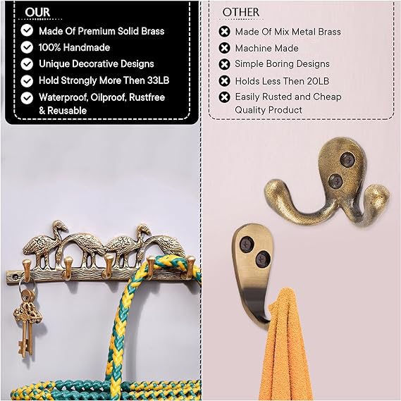 This intricately designed Brass four birds sitting on a branch of a tree is a great addition to your home decor. The elegant design will further enhance the interior of any room, entryway, and hallway and strong enough so that it will be enough to fit most key chains.