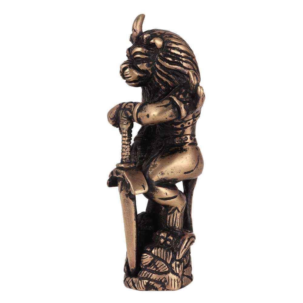 A warrior and guardian, with a lion face carrying a sword, is a fairly uncommon brass statue. The beautiful sculpture is not only a lovely addition to any home, but it's also a thoughtful gift for a friend during a wedding or other important events.