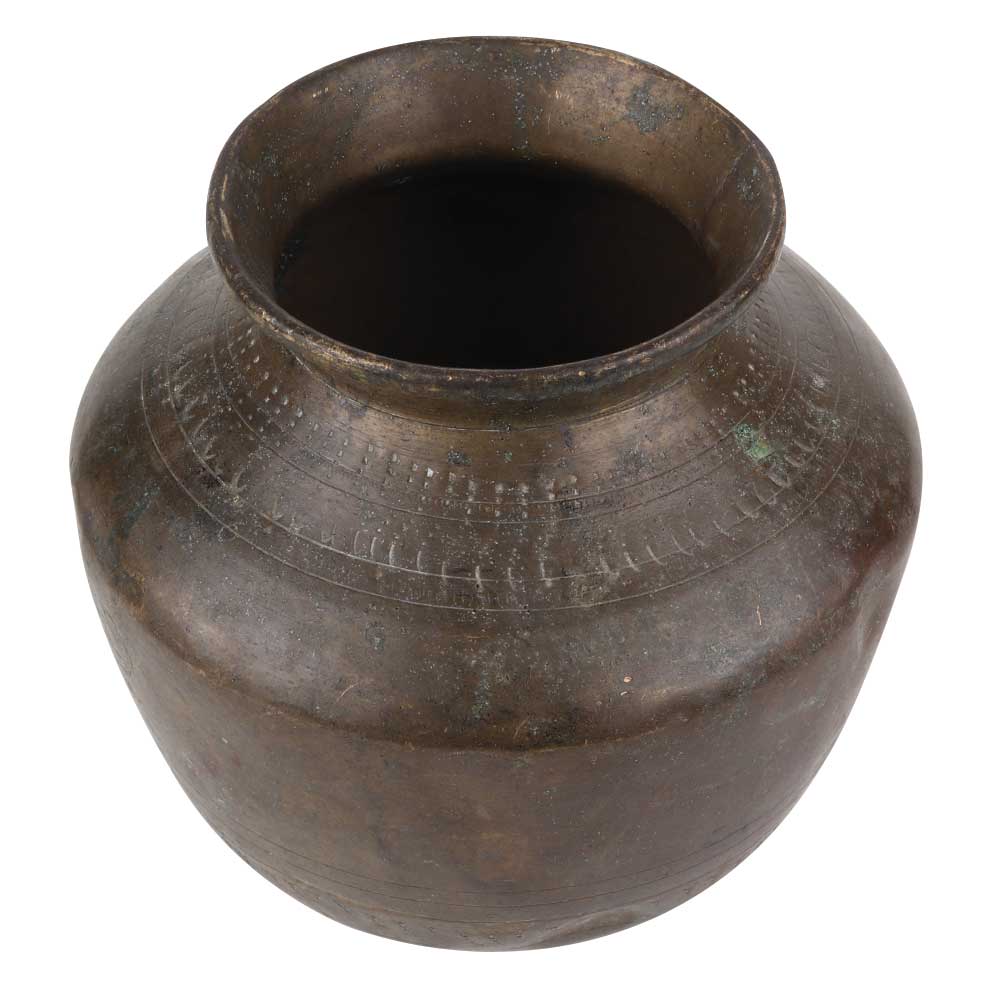 Brass water pot with fluted design in the centre narrow neck with flat rim and round base that holds the pot in its place . It can be used as a flower decoration put fresh flowers in it or dried leaves and put it for display. It can be gifted to friends and relatives on diwali , Christmas or other auspicious function.