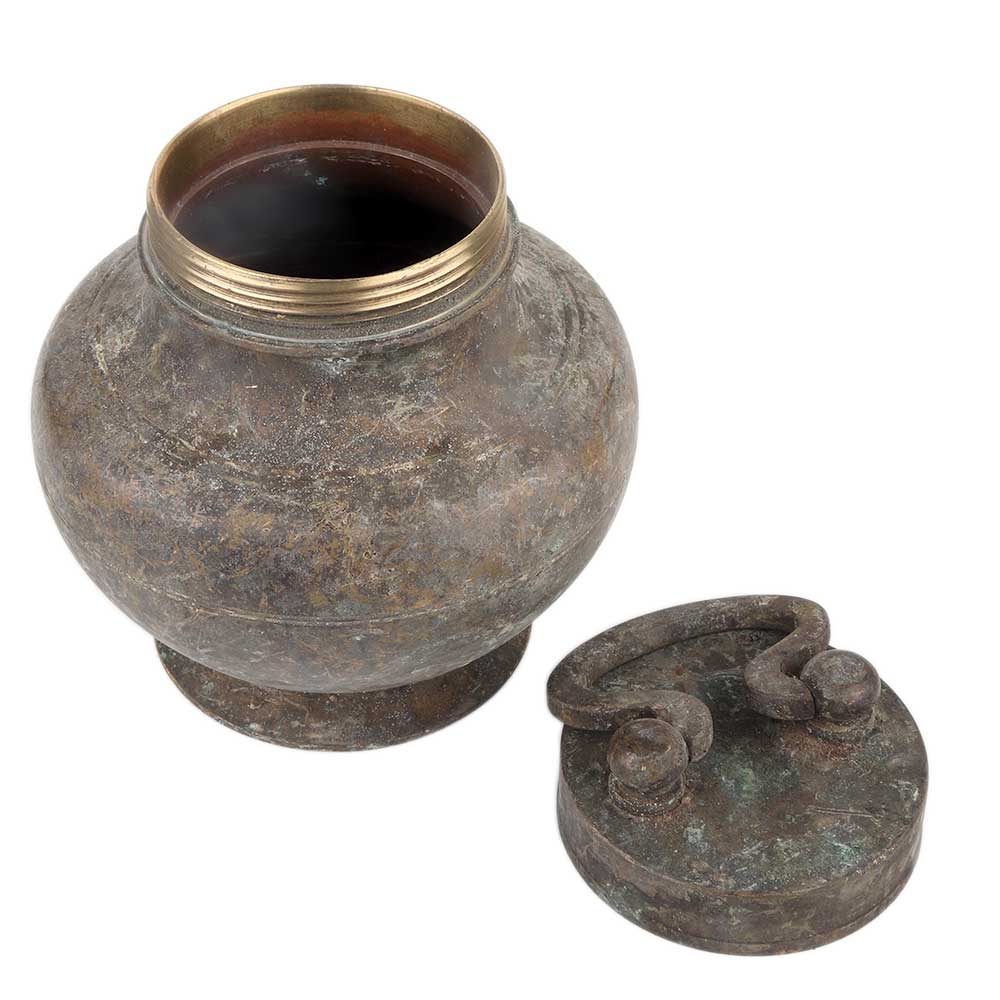 Brass holy water pot with a lid that has a handle to open and close the lid. It was used to store holy water pot and kept in temples and other places of worship. Gift it to your near and dear ones on Diwali, Christmas, new year and house warming . Place the pot in the reception of your home, hotels and restaurants.