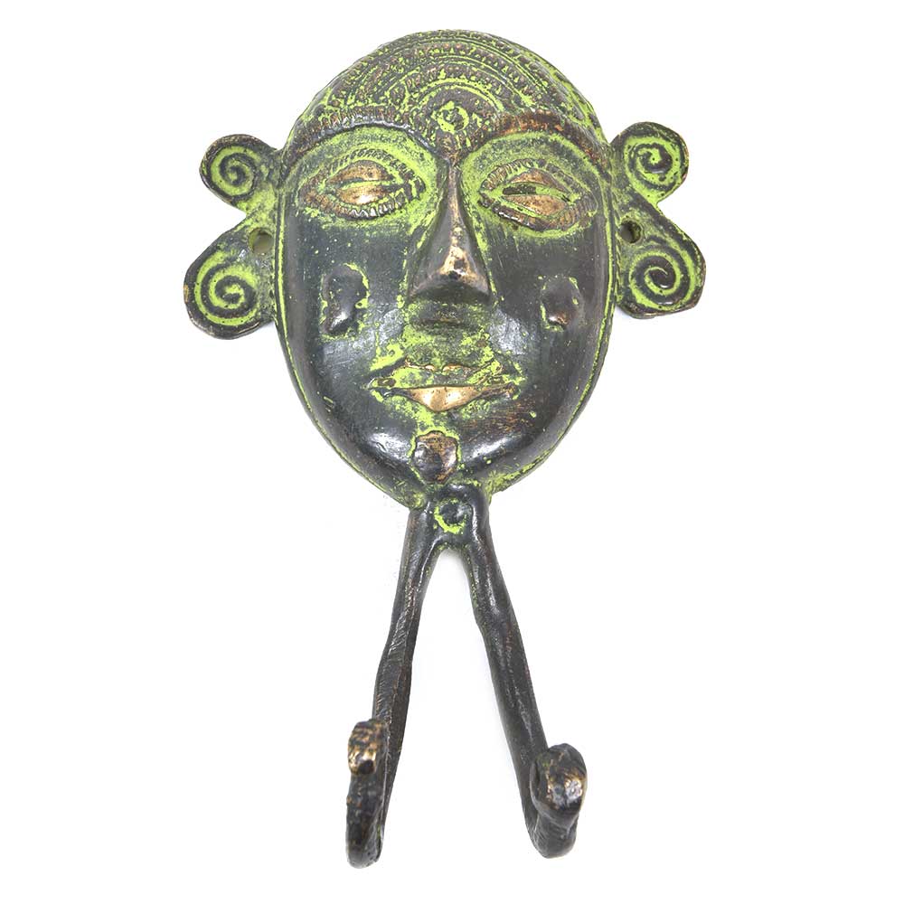The Face Mask Hook is Made of Bronze. the Face Mask Hook has Patina Which Makes It More Beautiful. There are 2 Hooks. This Face Mask Hook is Made By the Craftsmen of India. This Bronze Face Mask can be Gifted to Someone. the Bronze Face Mask has Fine Detailing. This Hook is Handmade.