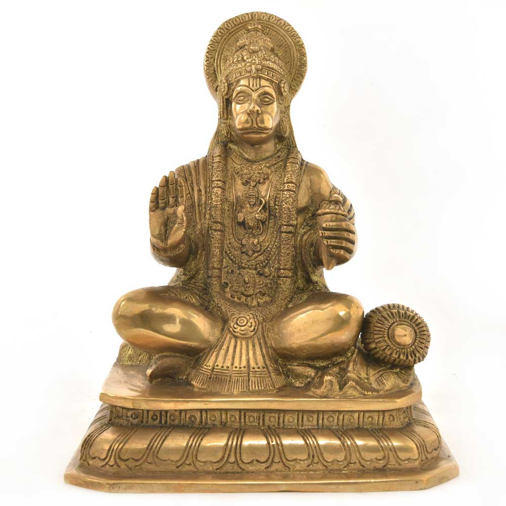 Brass Hanuman is in Sitting Position Worshipping Lord Ram. Hanuman is the God Who Keeps All Bads, Evils Away From You. The Hanuman Figurine is Handmade by the Skilled Artisans of India. Lord Ram Can Be Seen in Hanumans Chest. Hanuman'S One Hand is Giving Blessing Whereas in the Other Hand He is Holding Something. Lord Hanuman Helped Lord Ram (Avtara of Vishnu) to Find Sita Mata and Kill Ravana. There is Fine Detailing. There is a Round Pillow Kept Near Lord Hanuman.