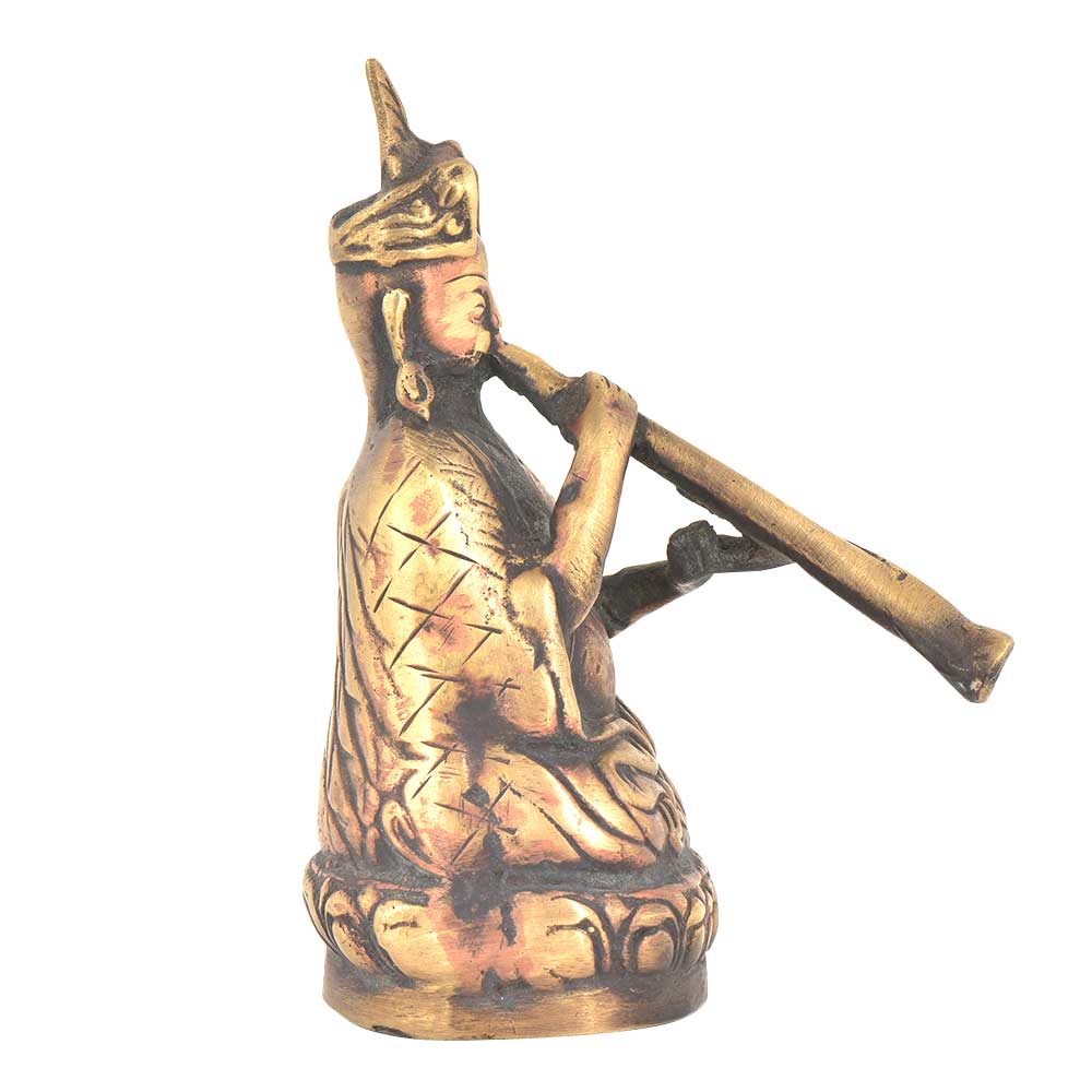 Nepalese musician sitting with a gyaling is seated on a raised platform and it has got very beautifully done fine engraving. This fantastic musician statement is made of bronze and is handmade by the skilled craftsmen of India.