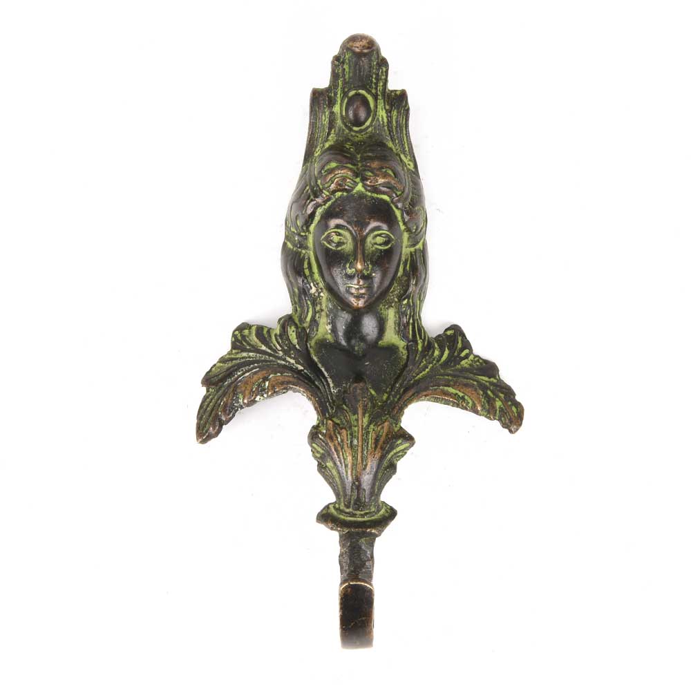 Bronze Patina Metal Female Face Sculpture Figurine Wall Hook.