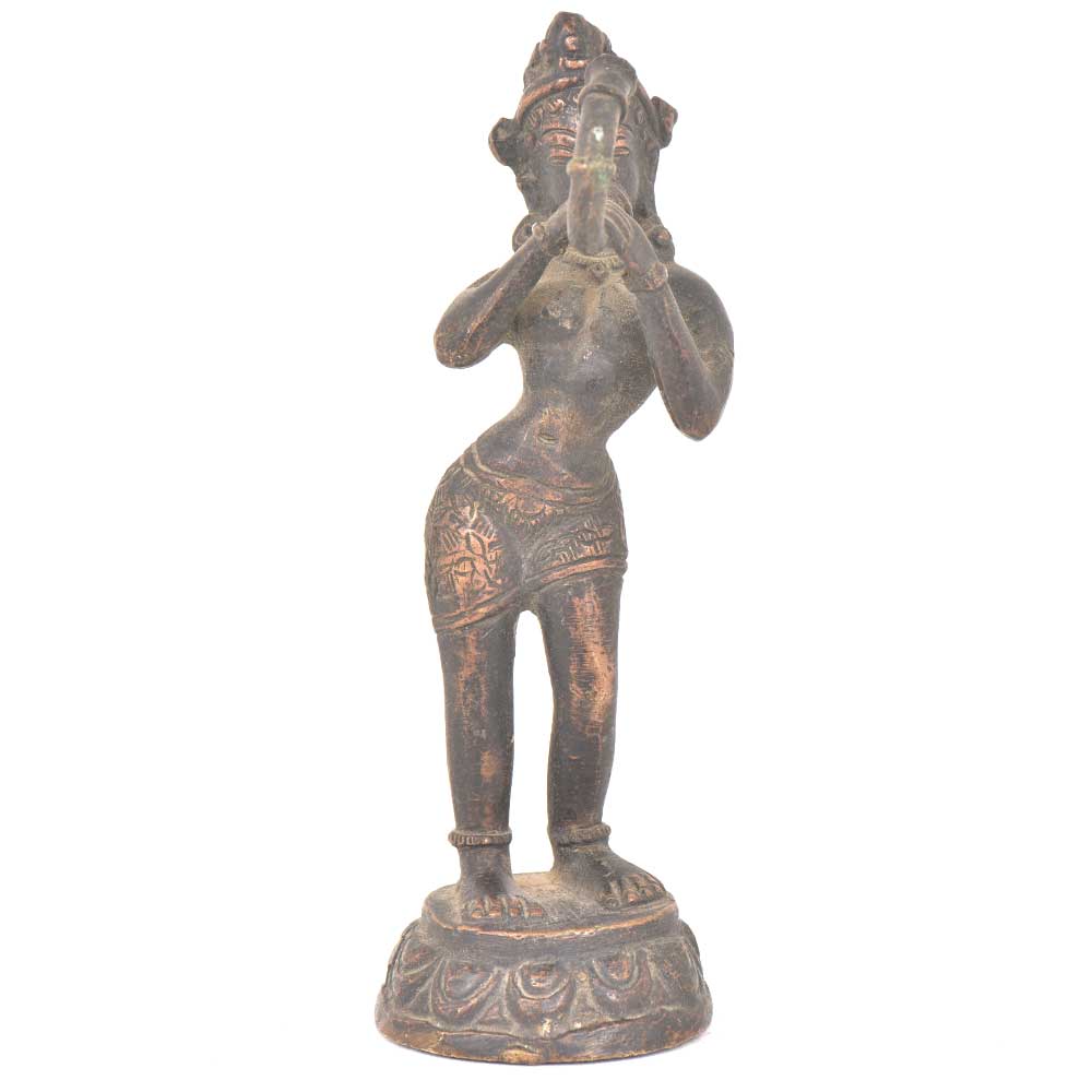 Tribal lady playing tribal trumpet is handmade by the local craftsmen of India and is made of bronze. This bronze figurine can be used for gifting, decoration etc. Beautifully engraved and a fabulous centre table piece.