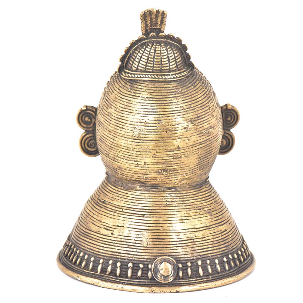 Tribal queen head statue is made of bronze and is handmade by the skilled craftsmen of India. This queen head statue is beautifully ornamented with jewellery. The queen is wearing 2 nose rings, head chain and neck piece. It will look beautiful when placed on tables of your room or drawing room etc. .