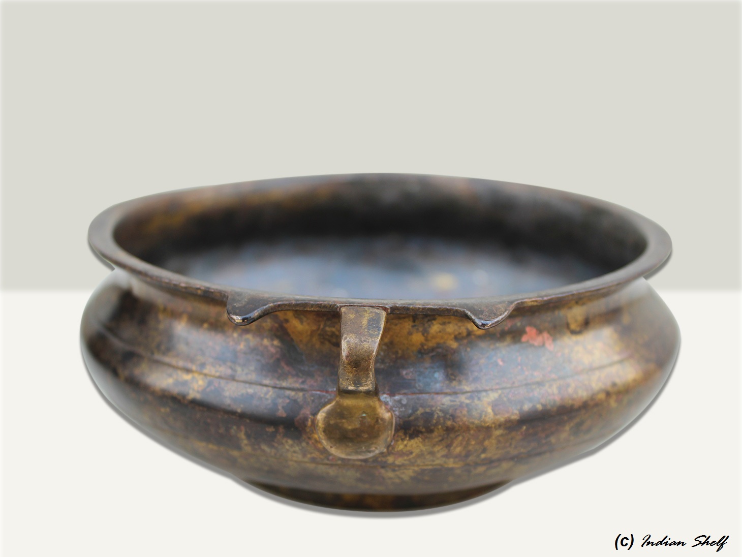 South Indian bronze urli Made by lost wax process. One of its kind. It was used before in India to cook food to serve gods and deities. Now it is ideal to put flowers and floating candles and use it as a perfect indoor decoration. The beauty of this piece lies in the way of making this piece. This urli is made by lost wax process. Which is completly done by hand. It serves as a beautiful bronze bird bath too.