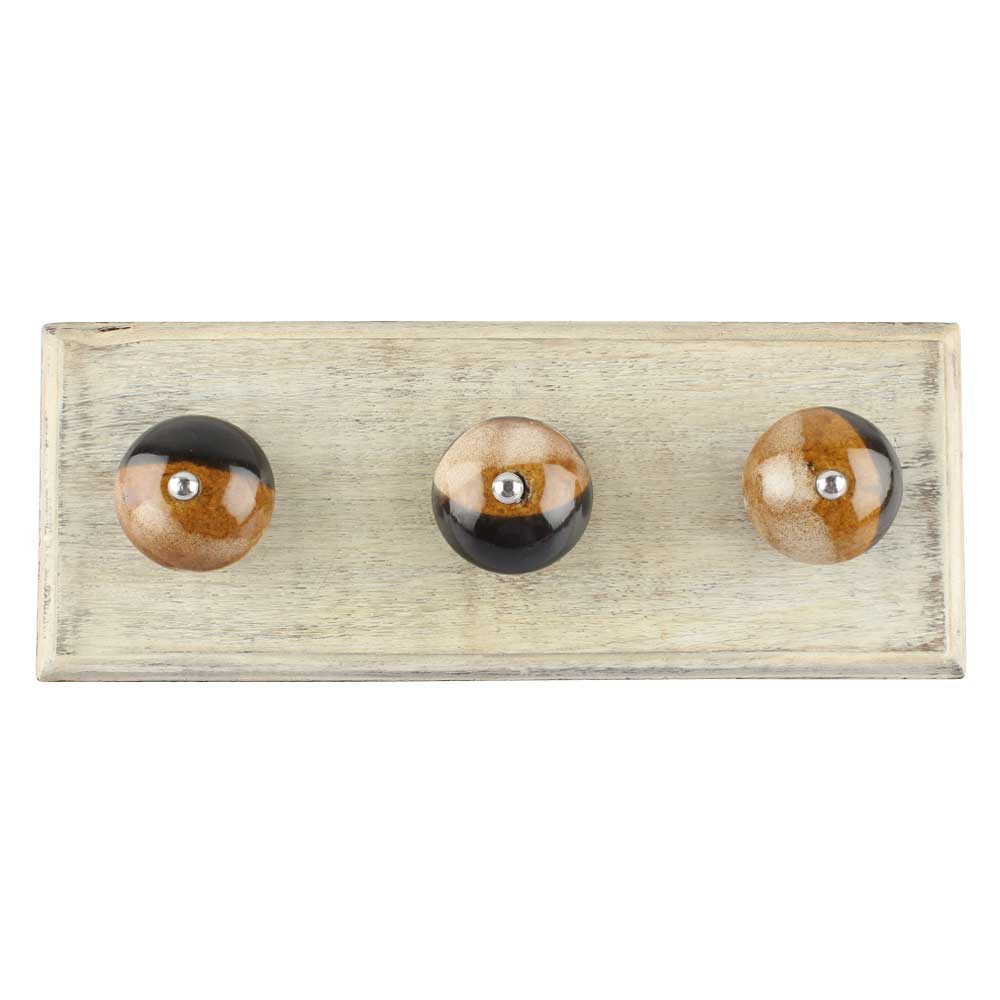 Brown And Black Ceramic Wooden Hook. A Perfect Complement to the Soft Tone of the Wood are these White Traditional Hat and Coat Hook Made of Genuine Porcelain and Brass. It can be used to Hang Jewelry, Leashes, Towels, Scarves, Light Weight Sweaters, Caps etc.