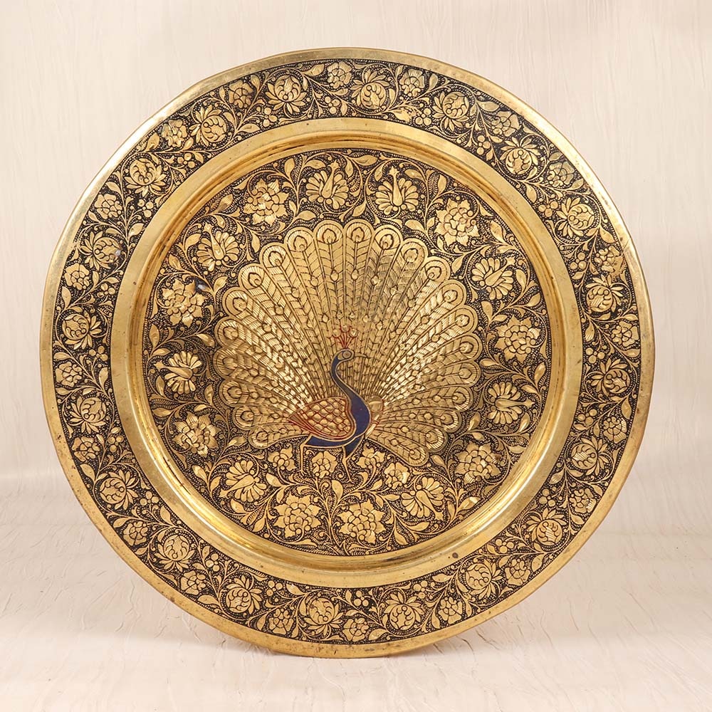Immerse yourself in the captivating charm of the past with our exquisite Vintage Brass Hanging Plate. Adorned with a mesmerizing peacock engraving and accented with rich brown and vibrant blue enamel, this stunning piece is a true work of art that will elevate your decor. Escape the monotony of the modern world and surround yourself with the timeless elegance of a bygone era. This vintage-inspired brass plate is a testament to the enduring beauty of traditional craftsmanship, perfect for the homeowner who craves unique, eye-catching accents. Whether displayed on the wall, atop a mantel, or as part of a curated vignette, this stunning piece will instantly transform any room into a sophisticated oasis. Infuse your living room, bedroom, or entryway with the enchanting charm of the past and make this Vintage Brass Hanging Plate the focal point of your home decor. Elevate your space and captivate your guests with the undeniable allure of this breathtaking brass plate. Embrace the beauty of the past and let this vintage-inspired masterpiece transport you to a world of elegance and sophistication.