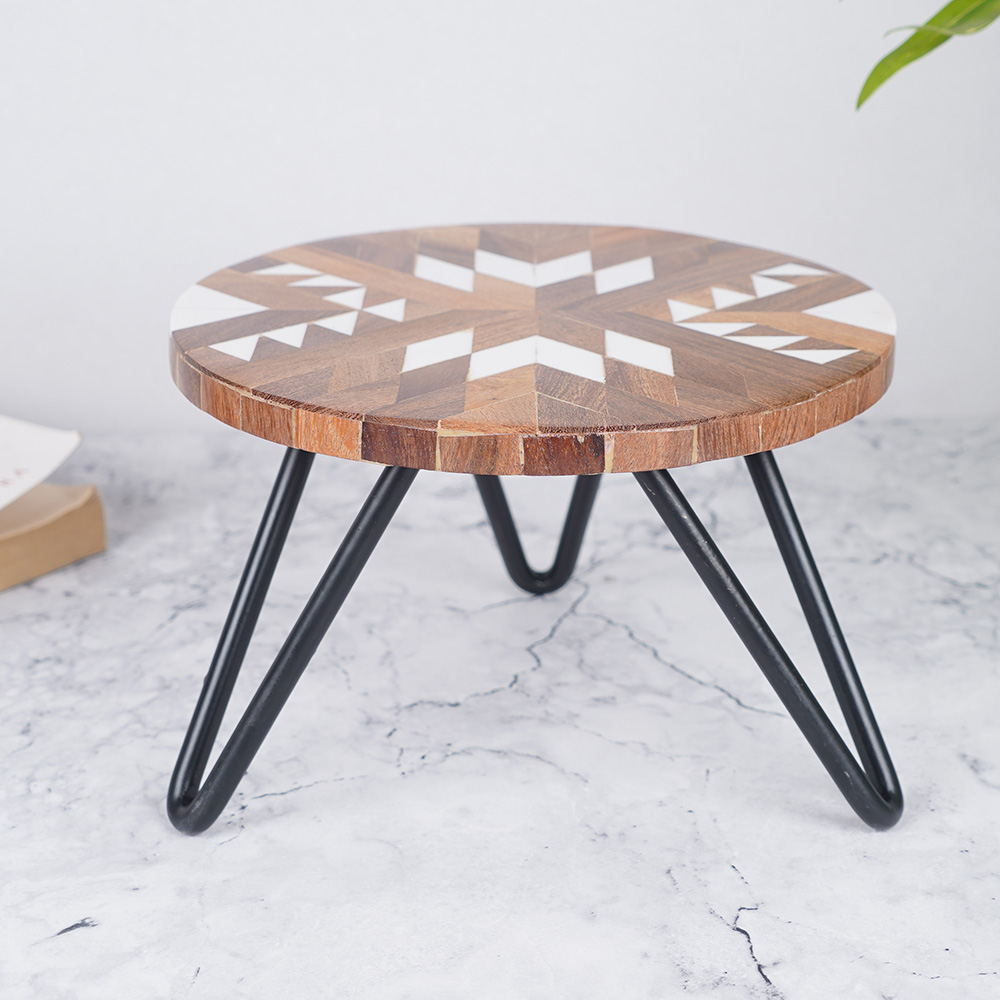 The combination of wood and resin gives this stand a sophisticated yet rustic feel, while the sturdy iron base ensures stability for heavier items. The raised design of the stand allows guests to easily access the treats while creating a tiered display for a more polished look. Whether it’s used for cakes, fruits, or appetizers, this stand serves as both a functional and beautiful centerpiece.