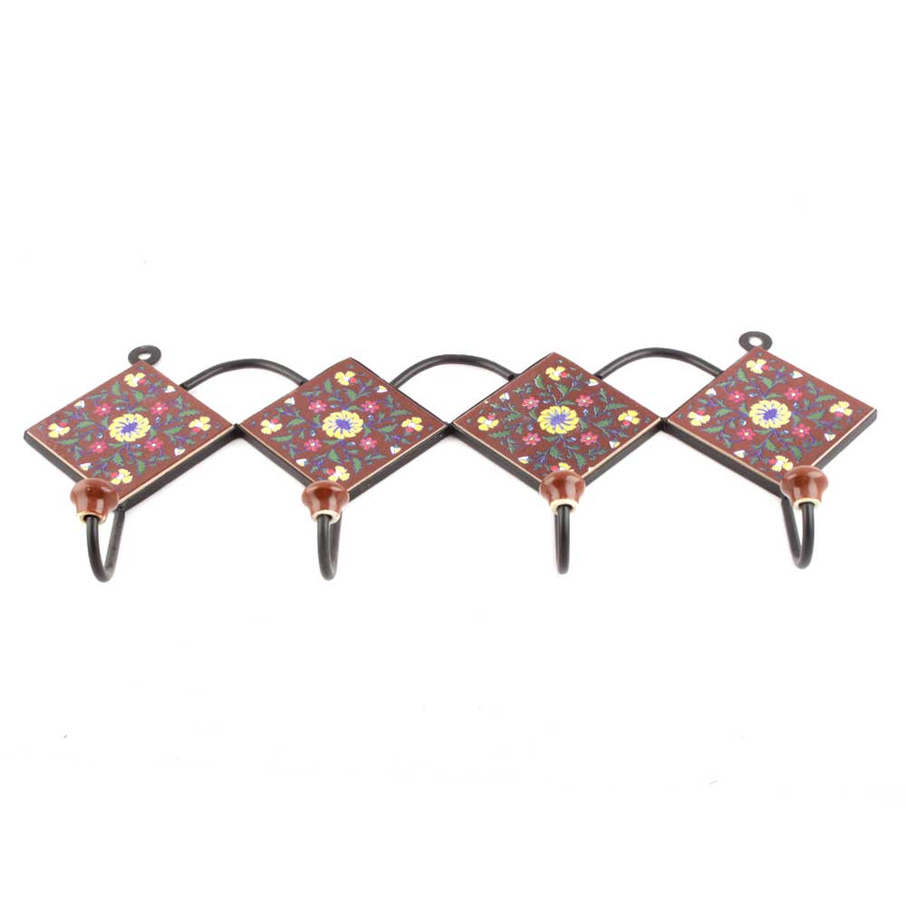 Brown And Yellow Wheel Flower Ceramic Tiles Hooks. When Put on Wall or Cabinet It is An Art in Itself. The Metal Part of this Hook is Black Powder Coated.