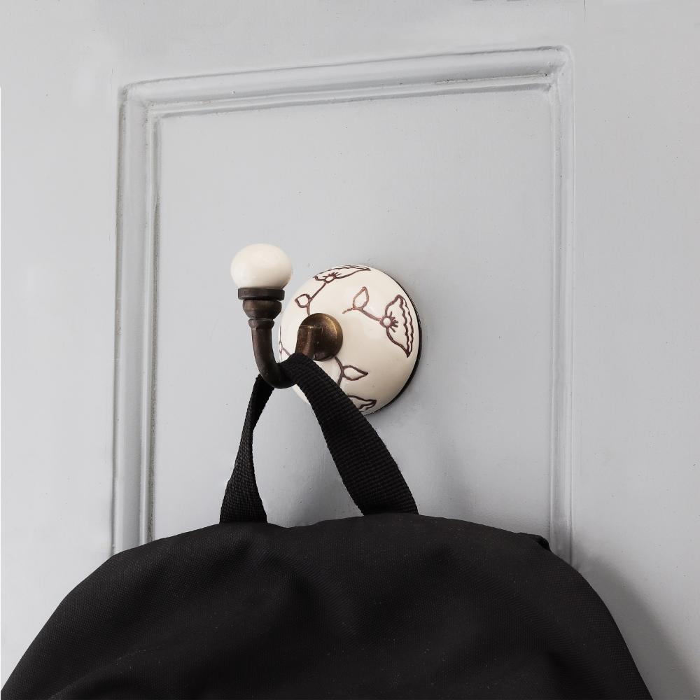 Brown Calla Lily Brown Etched Ceramic Wall Hook.When Put on Wall or Cabinet It is An Art in Itself. This Hook is Strong Enough to Hold Your Cloths, Keys, Tea Cups, Coffee Mugs, Hand Towels etc.