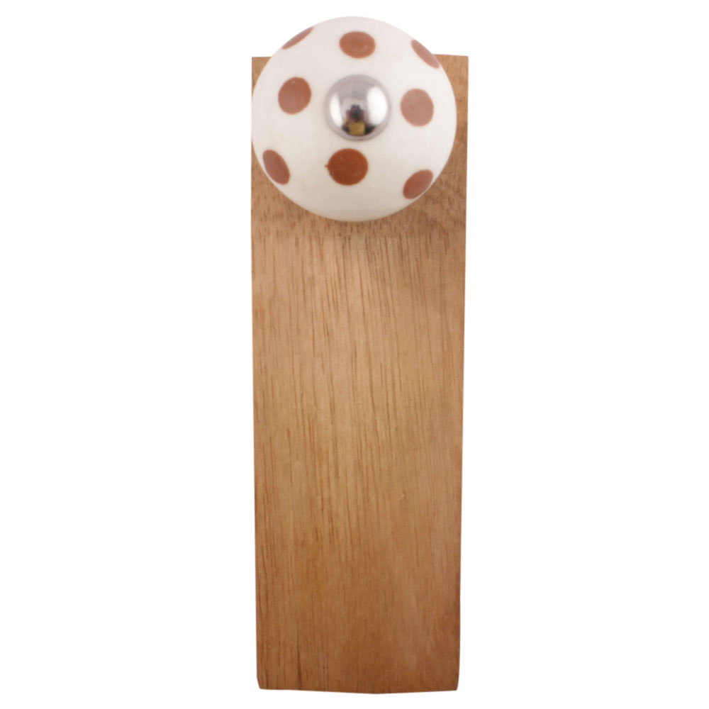 Handmade Ceramic and Wooden Door Stopper.Wooden Door Stopper with a Ceramic Knob to Carry it Easily. This Wooden Door Stopper has Glue Dots under it to Ensure that it does not Slip. It is Handmade by the Craftsmen of India and this Innovative Door Stopper won't Disappoint You.