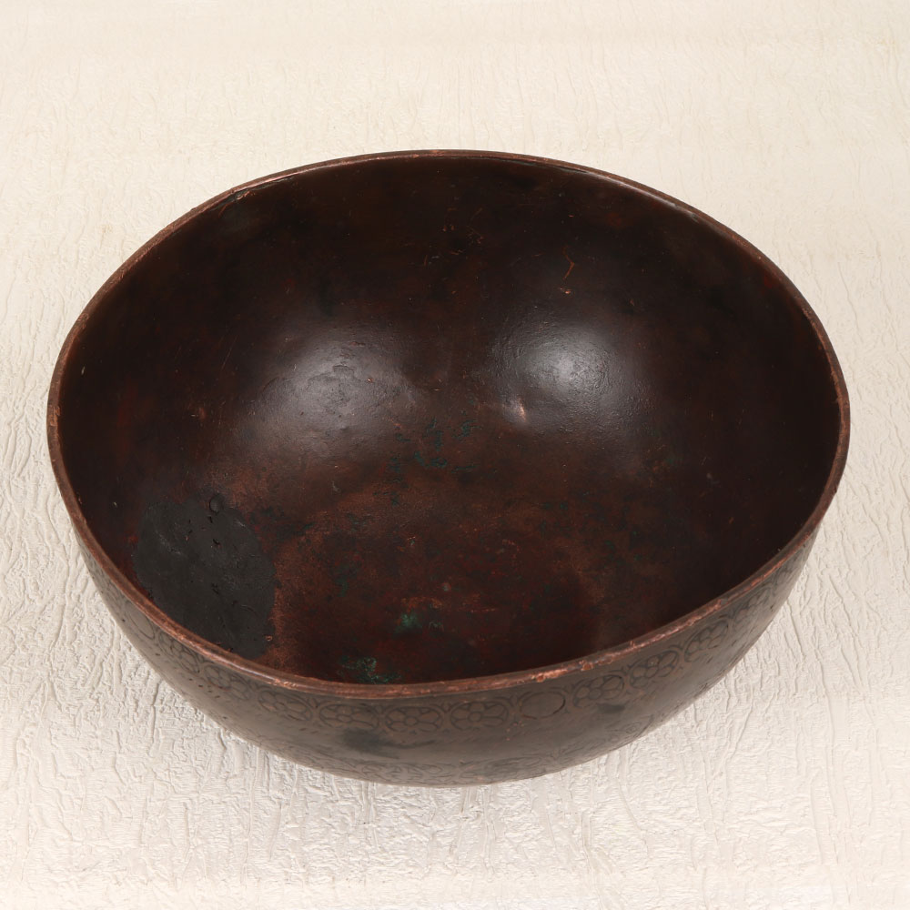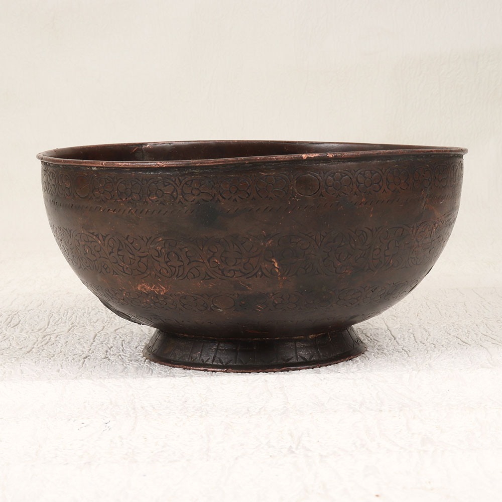 Make a showstopping statement with this antique engraved copper bowl. Crafted from durable vintage copper with intricate hand-engraved Islamic Art motifs, this bowl captivates with its exotic artistry and old-world charm. The mesmerizing engraving transforms this bowl into a true work of art. Its ornate Islamic Art motifs and warm antique copper finish give it an exotic, one-of-a-kind look that instantly upgrades any decor. Ideal for anyone seeking an artistic, exotic statement piece. This engraved copper bowl lends antique charm and exotic flair whether displayed in an entryway, kitchen, dining room, or office. A striking heirloom-quality accent that sparks conversation.