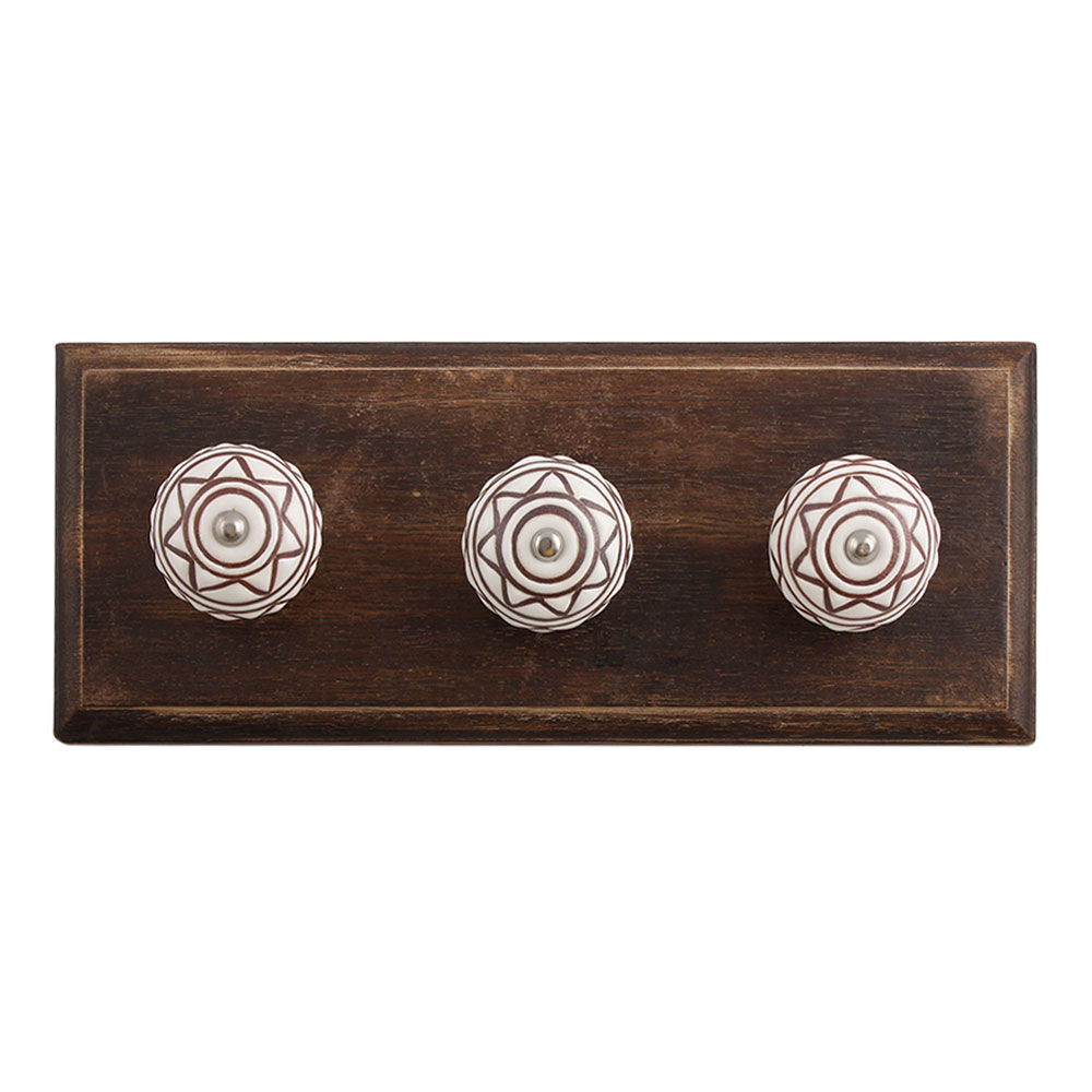 Brown Etched Ceramic Floral Wooden Hook. A Perfect Complement to the Soft Tone of the Wood are these White Traditional Hat & Coat Hook Made of Genuine Porcelain and Brass. It can be use to Hang Jewellery, Leashes, Towels, Scarves, Light Weight Sweaters, Caps Etc.