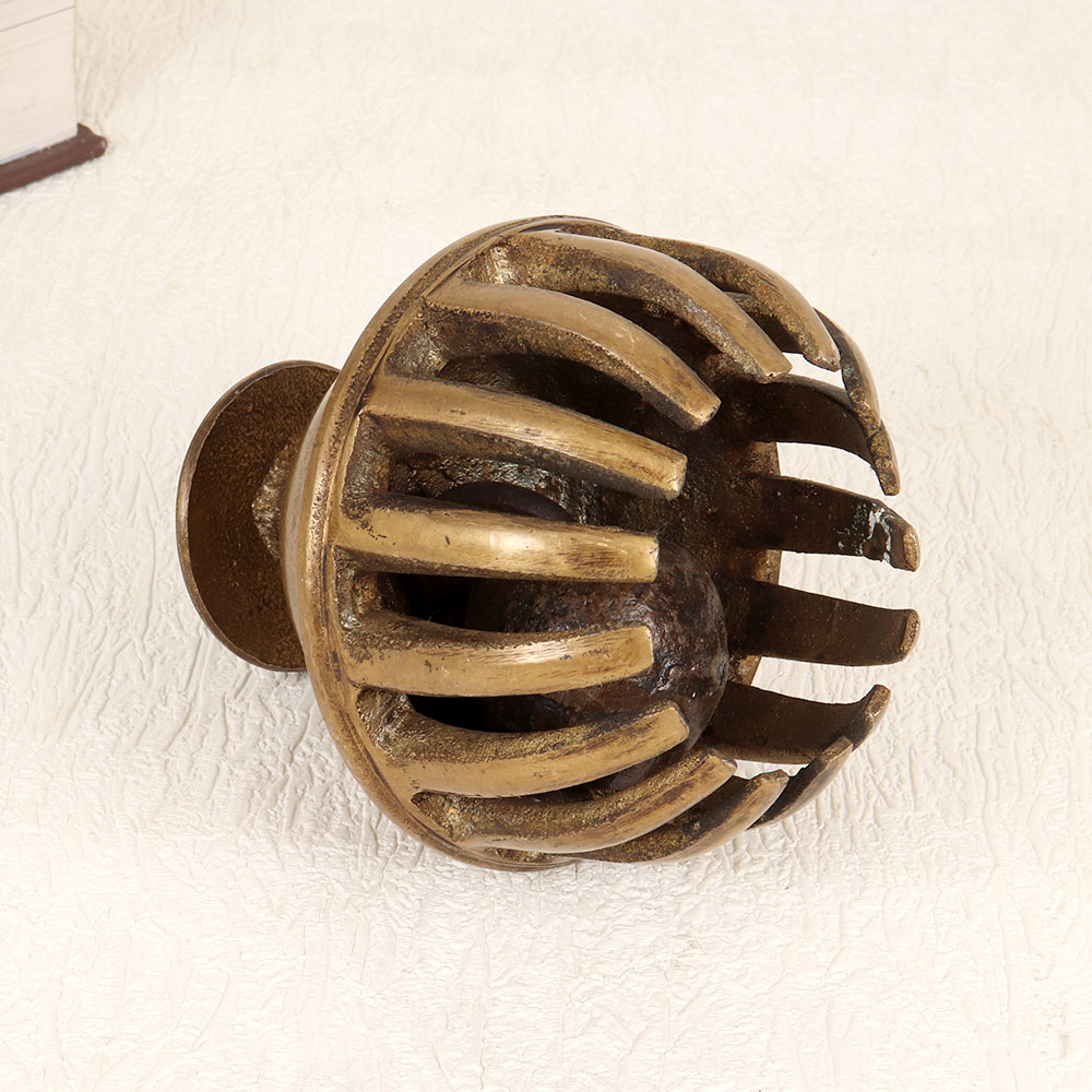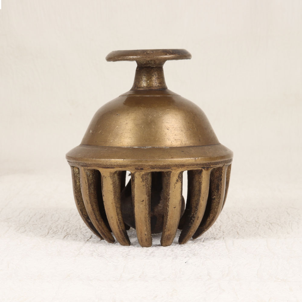 A Vintage Bell Metal Elephant Bell which is a timeless masterpiece meticulously crafted by highly skilled and experienced Indian artisans. This bell is cast from high-quality bell metal and boasts an antique brown finish that exudes an aura of vintage charm. Each bell is a testament to the artisan's dedication and expertise, ensuring a unique and handcrafted touch. The intricate design features an elephant, a symbol of wisdom and strength, adding cultural significance to this decorative piece. Its versatile appeal makes it a perfect adornment for various settings, including homes, offices, restaurants, hotels, or cafes. Placing this bell in any space instantly elevates its aesthetic, creating an ambiance of sophistication and cultural richness. This bell not only serves as a stunning decorative item but also holds sentimental value, making it an ideal addition to any vintage collection. Celebrate special occasions by gifting this masterpiece to your family, friends or relatives, adding a touch of tradition and elegance to their spaces. Whether for a festive celebration or auspicious moment, the Vintage Bell Metal Elephant Bell is a thoughtful and timeless gift that will be cherished for generations.
